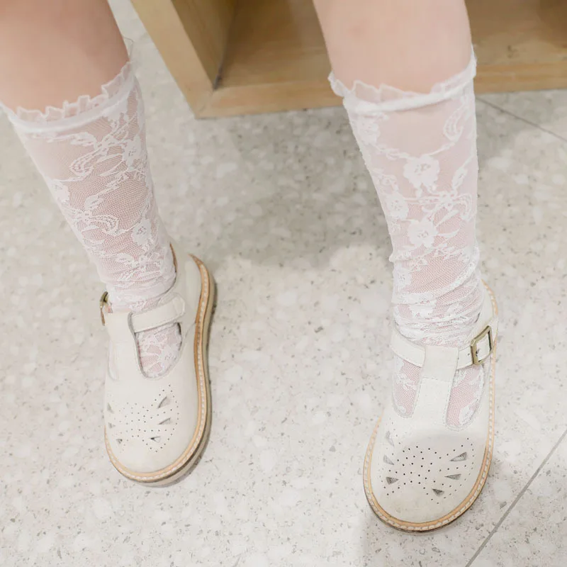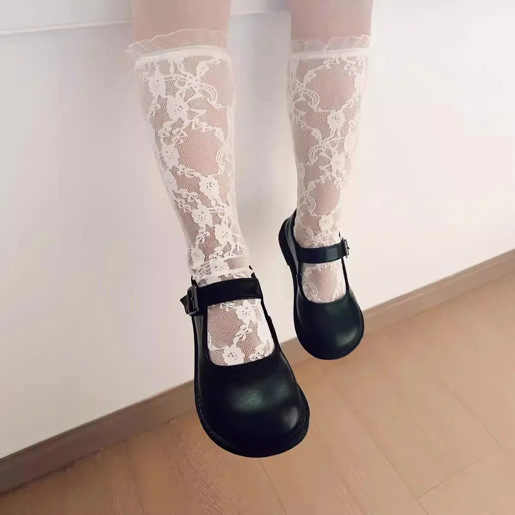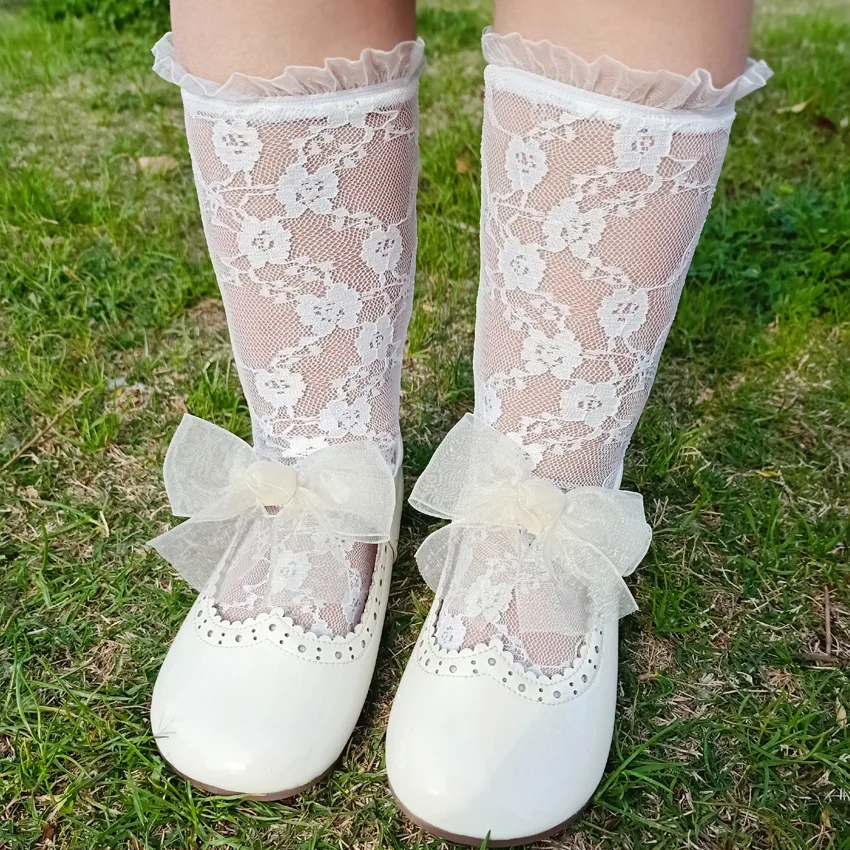 Comprar Calcetines largos hasta la rodilla para niñas, medias suaves de encaje, Princesa, con volantes, color blanco, 0 a 6 años
