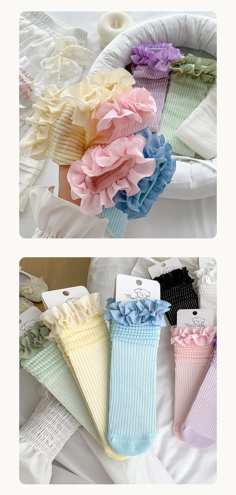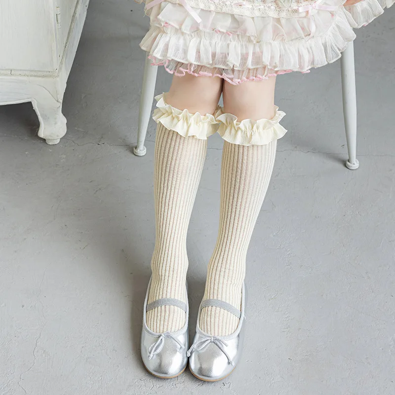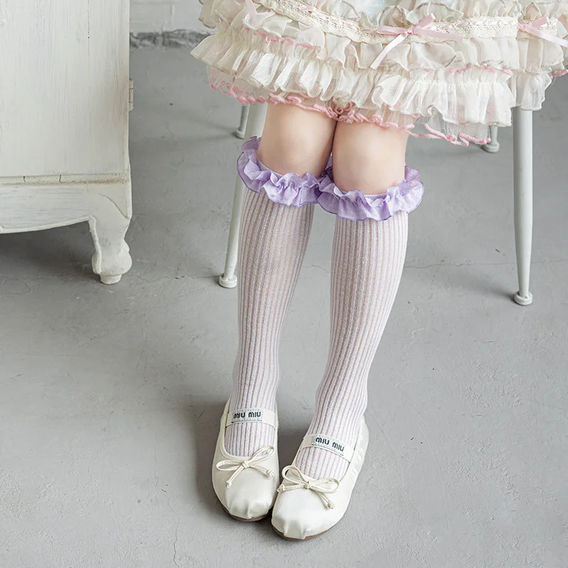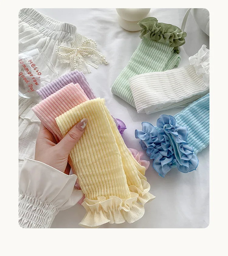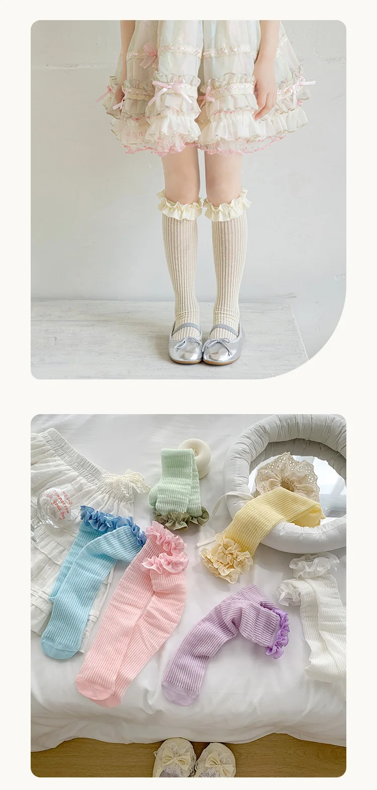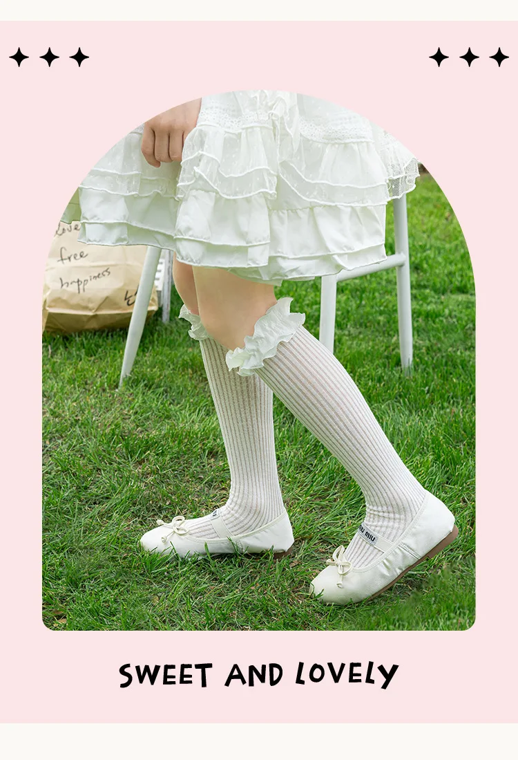 Calcetines largos sueltos con volantes para niñas, medias finas caladas de verano para niñas, medias de princesa dulce estilo Ballet Lolita para niñas