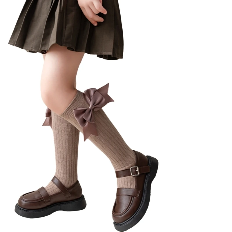 Características:OotdtyEleva el atuendo de tu hijo con estos calcetines hasta la rodilla, calcetines de fiesta de uniforme escolar, con diseños de lazo grande.