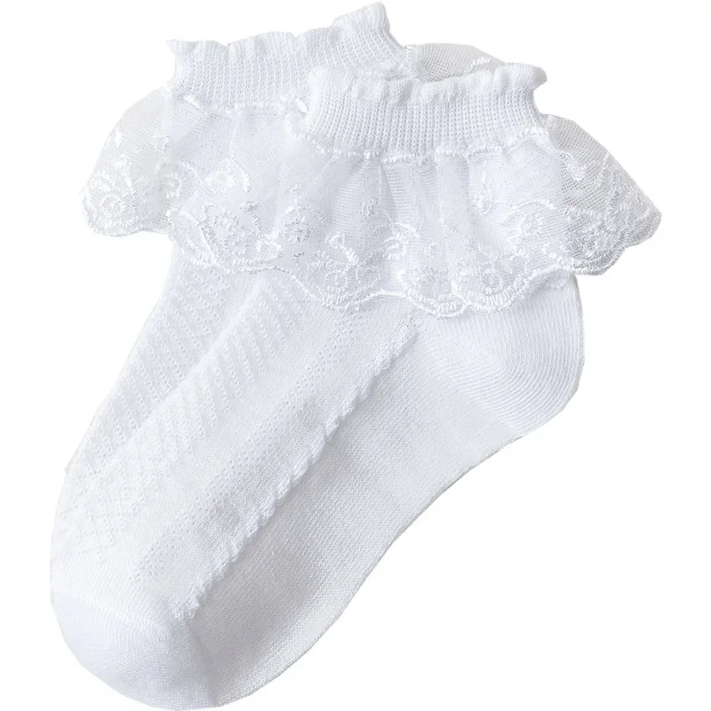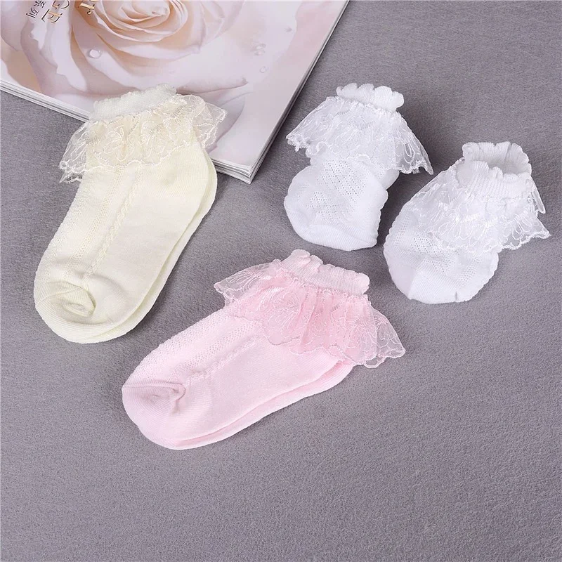 Comprar Calcetines de malla de encaje de algodón transpirable para niños, medias cortas de tobillo para niñas pequeñas, blancas, rosas y amarillas