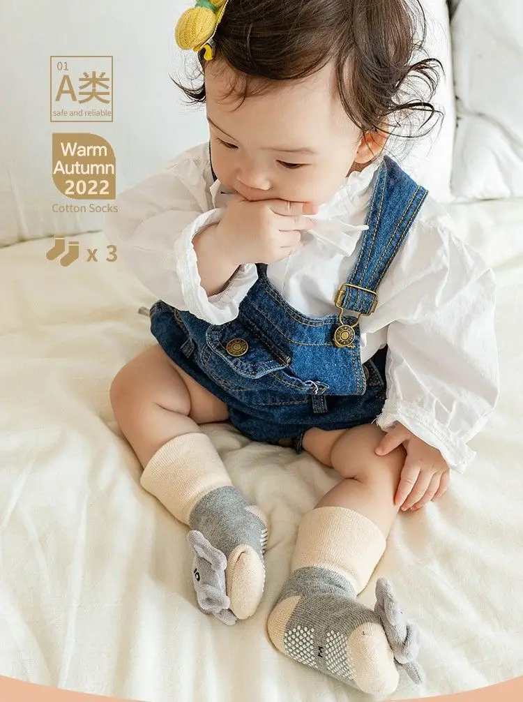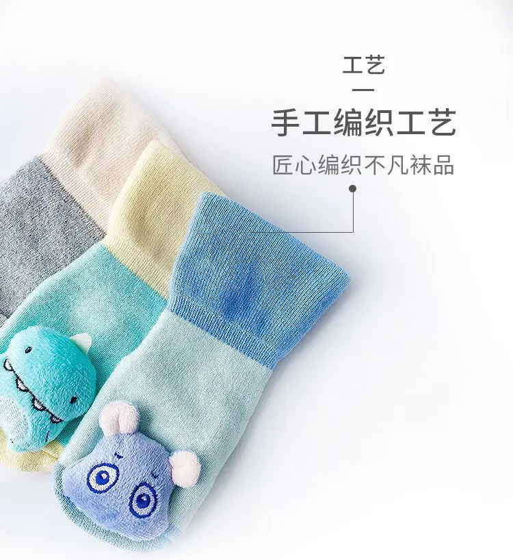 Calcetines a media pantorrilla para muñeca bebé, calcetines antideslizantes de animales de dibujos animados para recién nacido con campana pequeña, calcetines de algodón para suelo infantil de 0 a 1 año