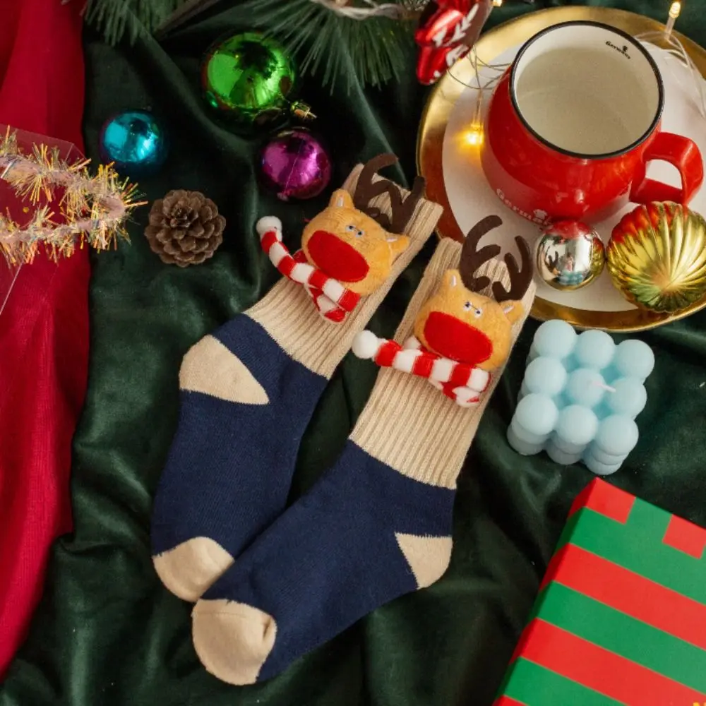 Comprar Calcetines navideños de algodón Harajuku para niños, medias gruesas de dibujos animados de muñecos de Papá Noel, calcetines de tubo medio para árbol de Navidad