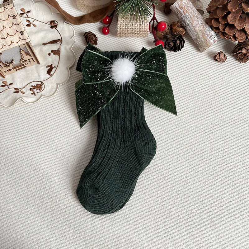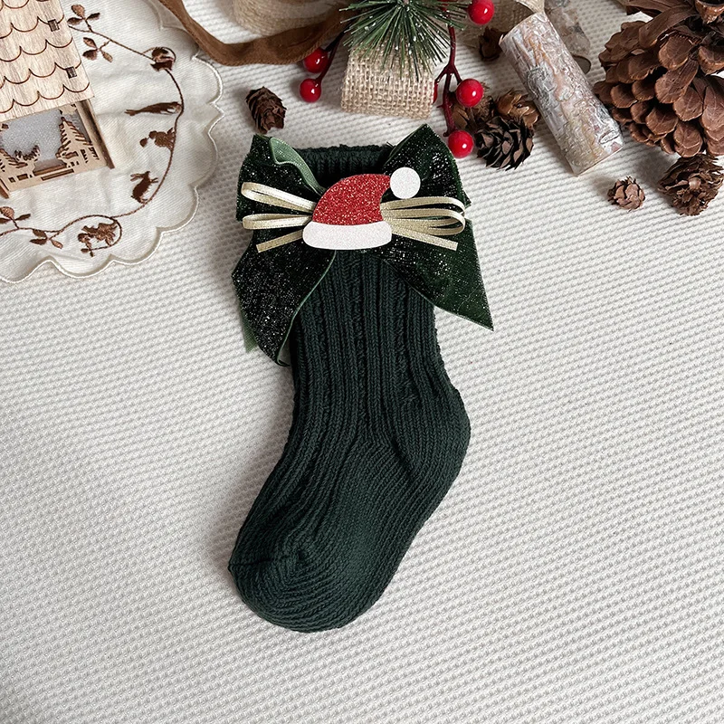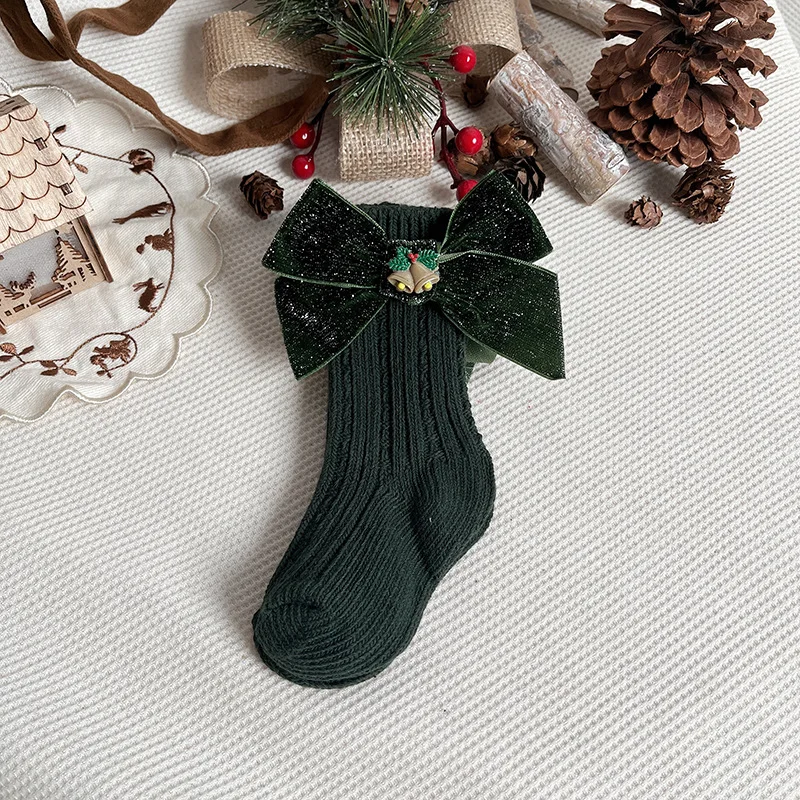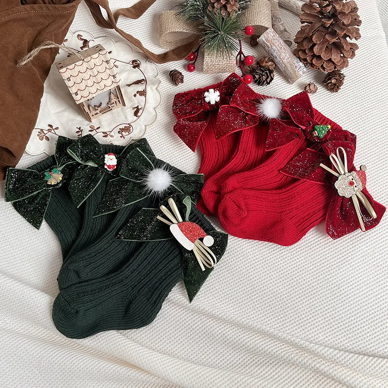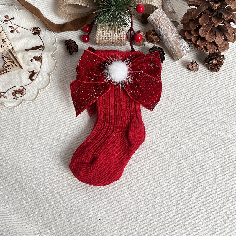 Comprar Calcetines navideños de invierno para bebés y niños, calcetín hasta la rodilla, calentadores de piernas de lana, calcetines largos rojos de algodón suave para niños de 0 a 5 años
