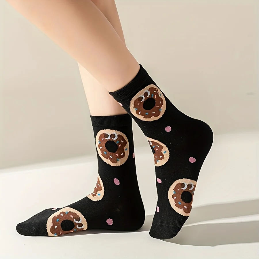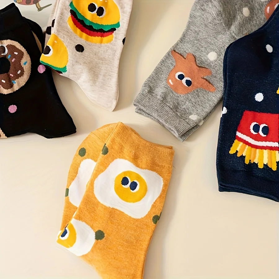 Calcetines para niños con lindos patrones de hamburguesas y patatas fritas de dibujos animados para niños y niñas, calcetines a media pantorrilla juveniles Trendyy y versátiles