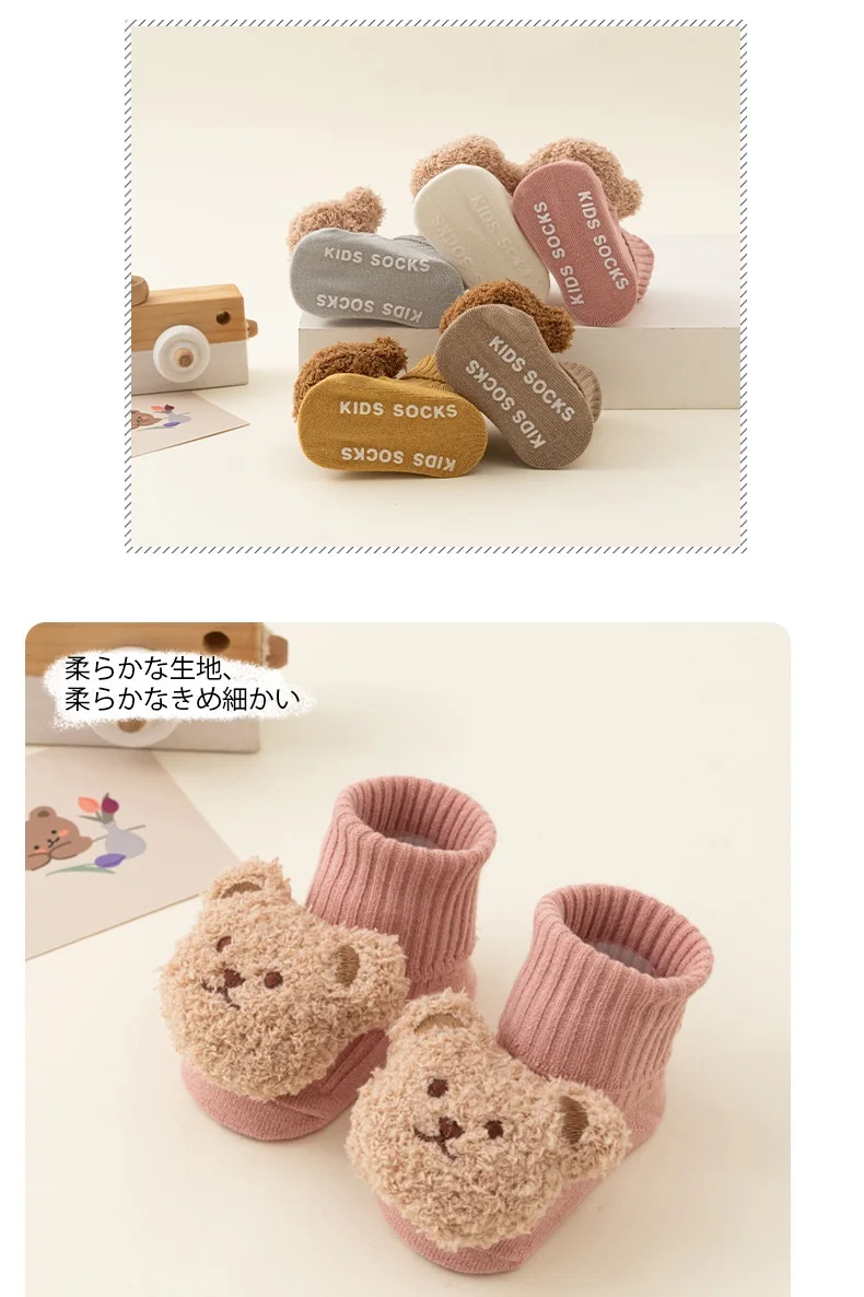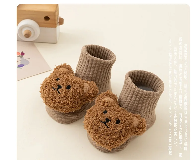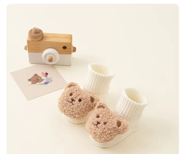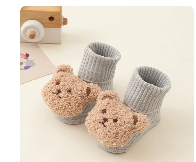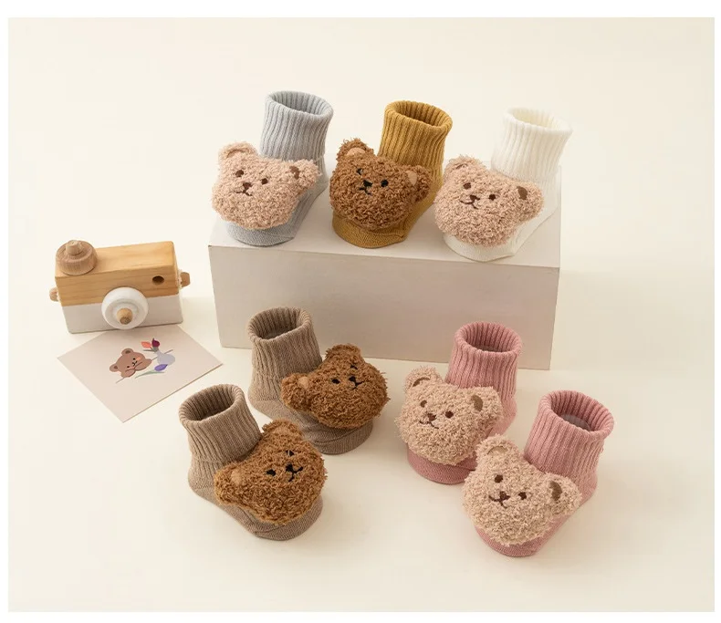 Calcetines de oso de dibujos animados para bebé, Calcetines antideslizantes para niños y niñas de 0 a 3 años, suaves, bonitos, para invierno y otoño