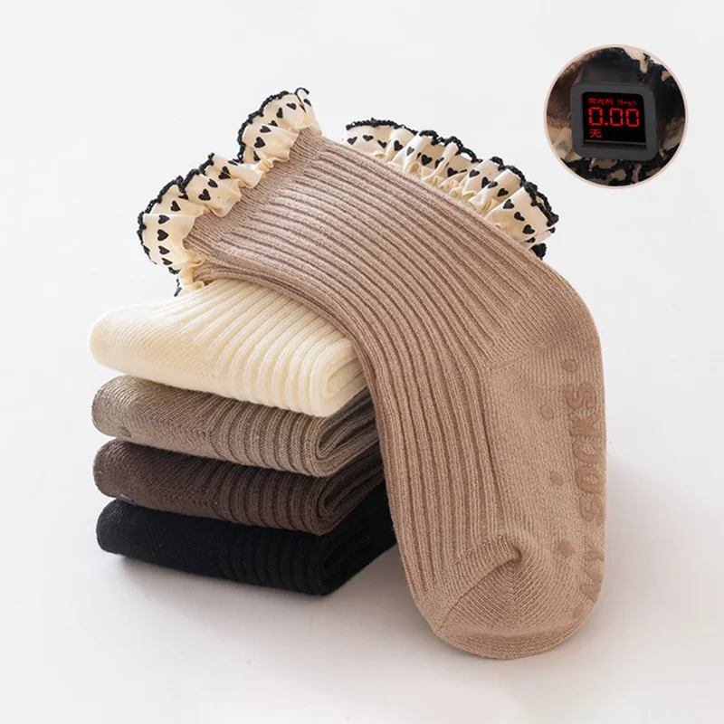 Comprar Calcetines de otoño para niñas, calcetines antideslizantes para recién nacidos, calcetines de algodón peinado con encaje de corazón, calcetines de princesa, accesorios para niños pequeños de 0 a 3 años