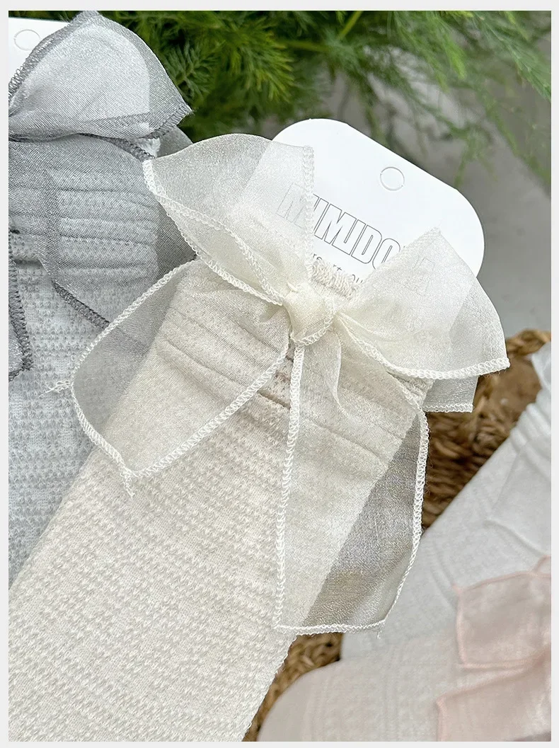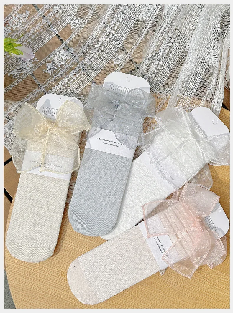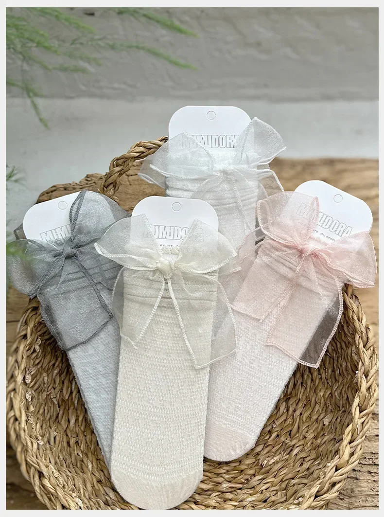 Calcetines de pantorrilla con lazo ultrafino de verano para niños y niñas, calcetines escolares de algodón suave con lazo de moda coreana Jacquard para niños