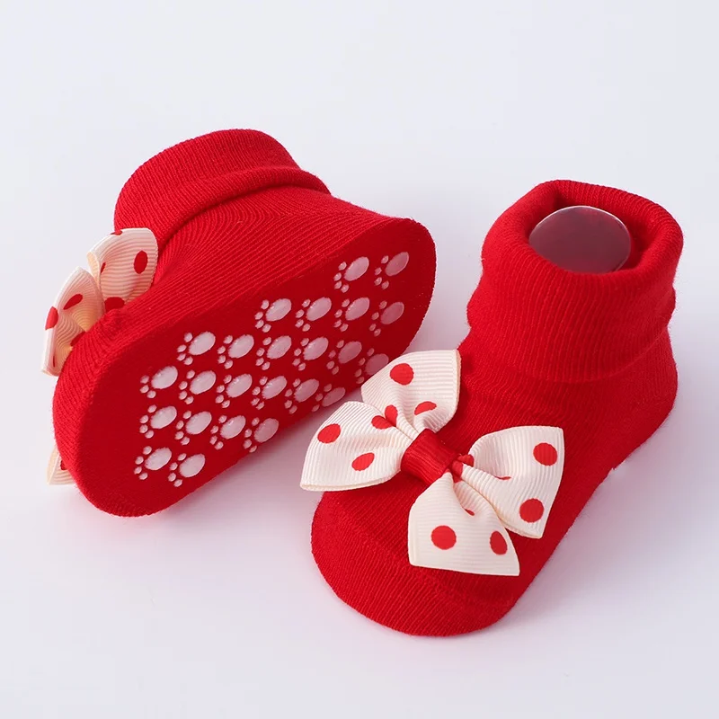 ►Dulces calcetines de princesa para niñas con diadema con estampado de puntos, bonita decoración de pajarita, diseño de suelas de pegamento antideslizante que envuelve perfectamente los pies del bebé, no es fácil de deslizar.
