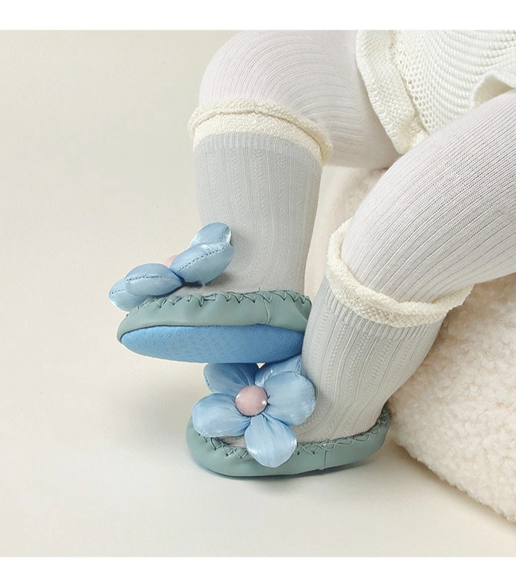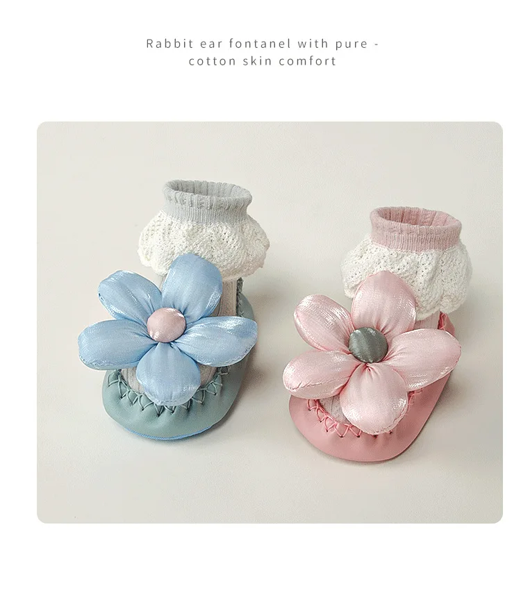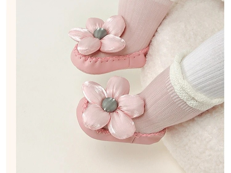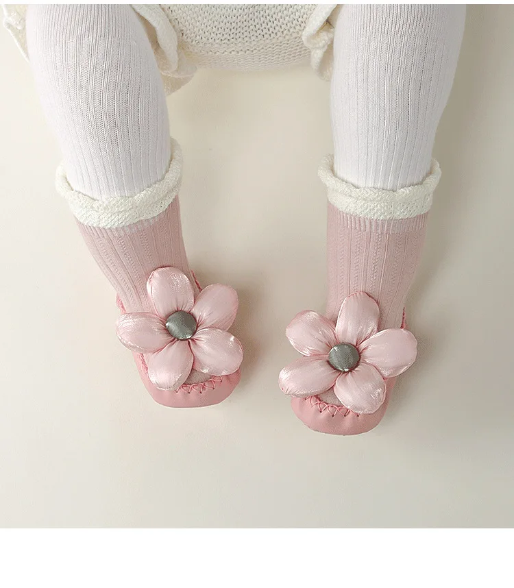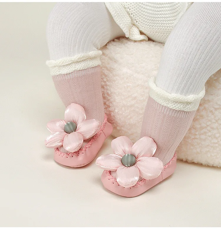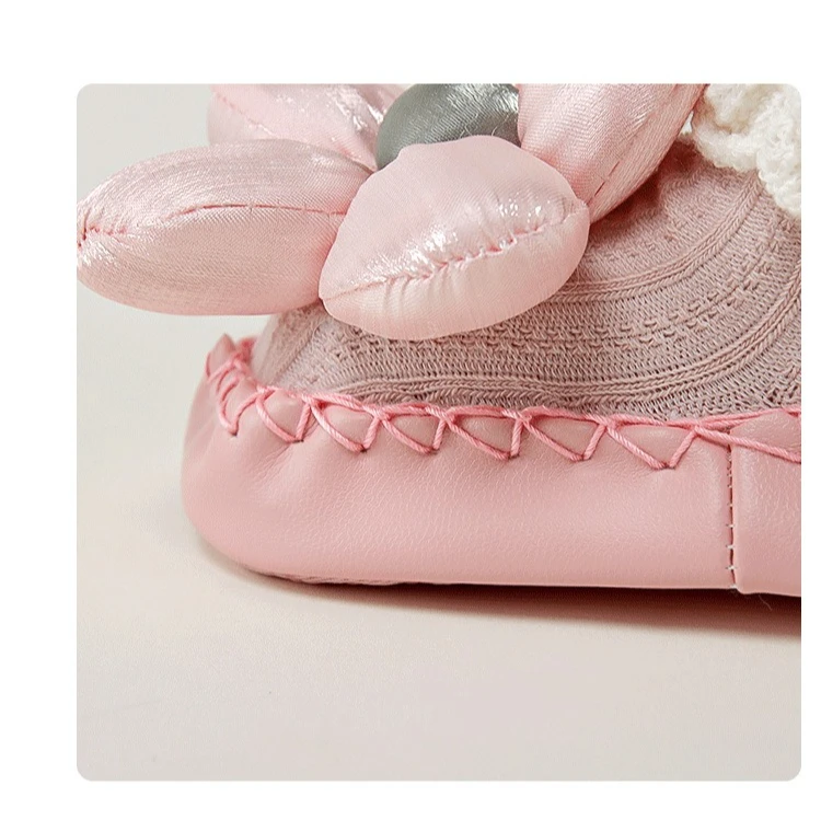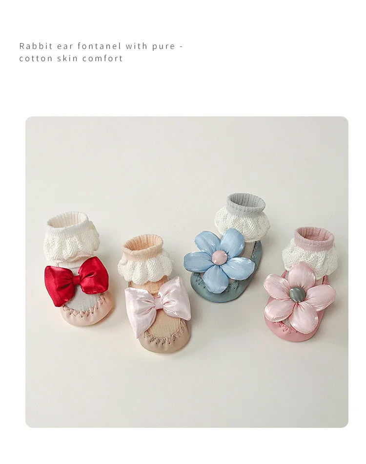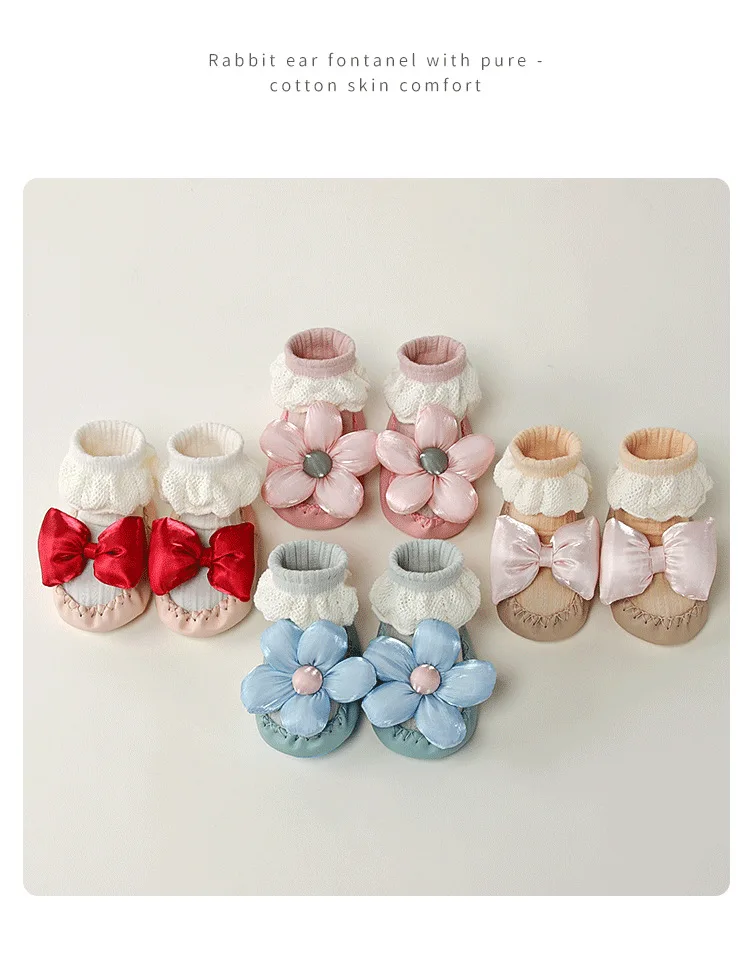 Calcetines de princesa para bebé, zapatos de estilo coreano con lazo Floral, suela de cuero, botines antideslizantes para primeros pasos, calcetín para primavera y otoño