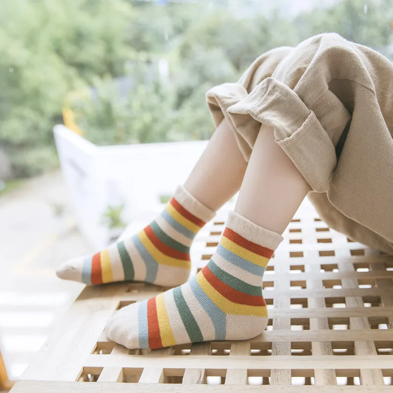 Comprar Calcetines de punto de Carttoon para niños y niñas, medias cortas con estampado Floral, 5 pares
