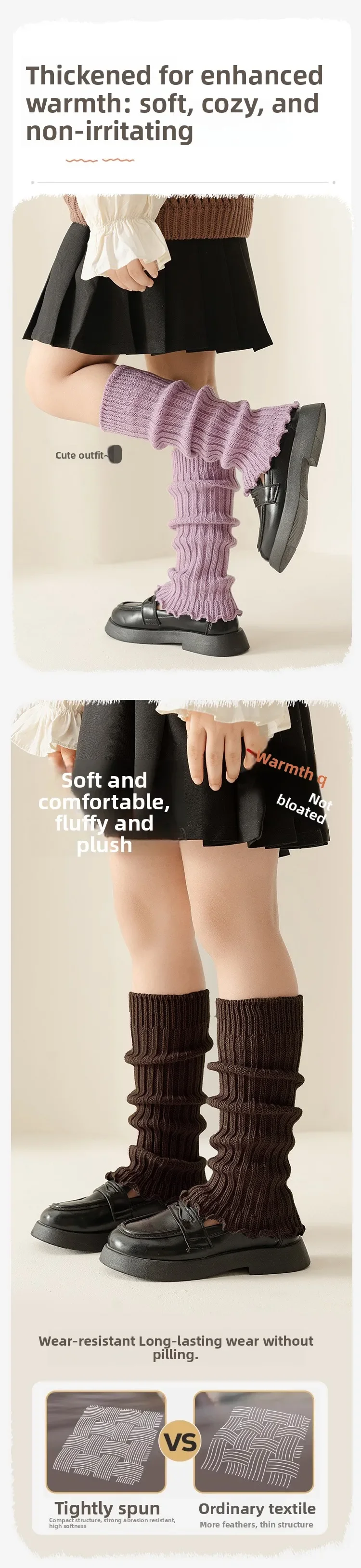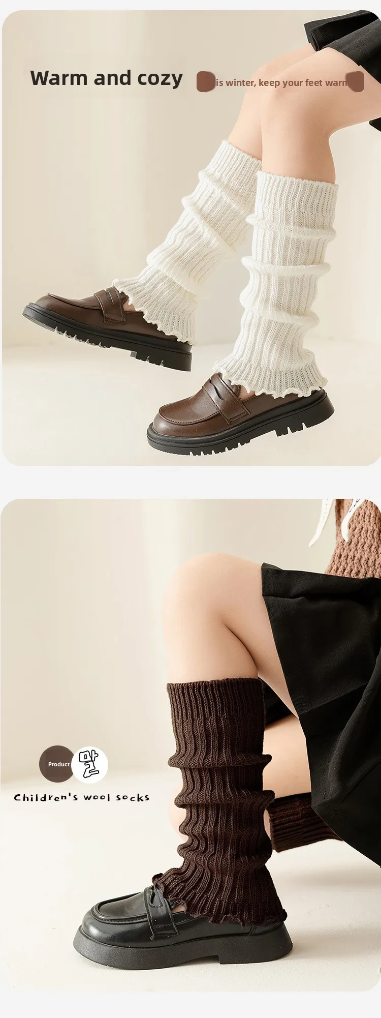 Calcetines de punto de estilo coreano de primavera-otoño para niñas: calcetines de media pantorrilla JK holgados con volantes de clase A, cálidos y de moda para niñas con estilo.