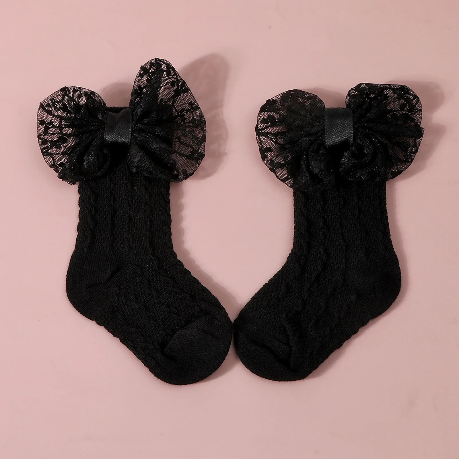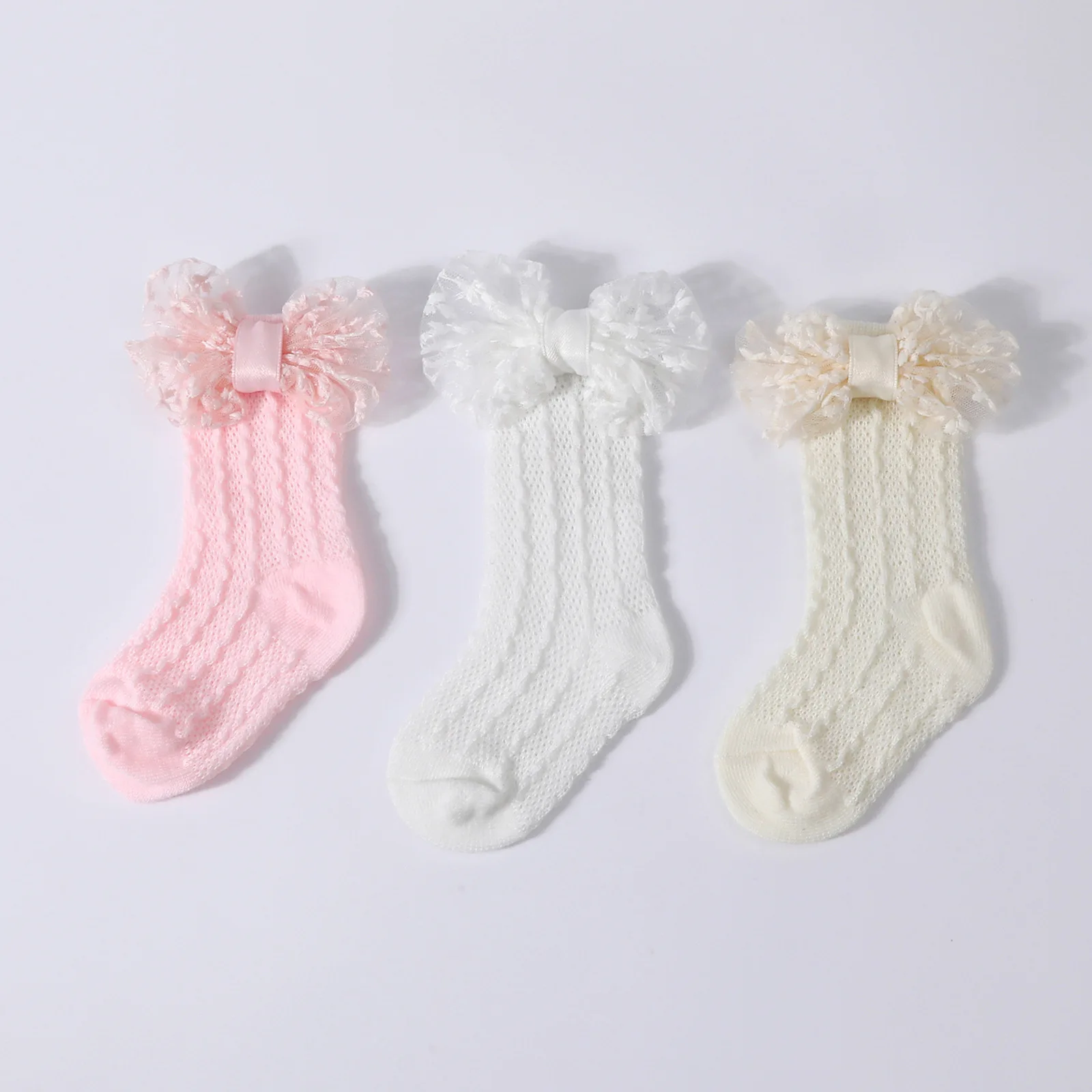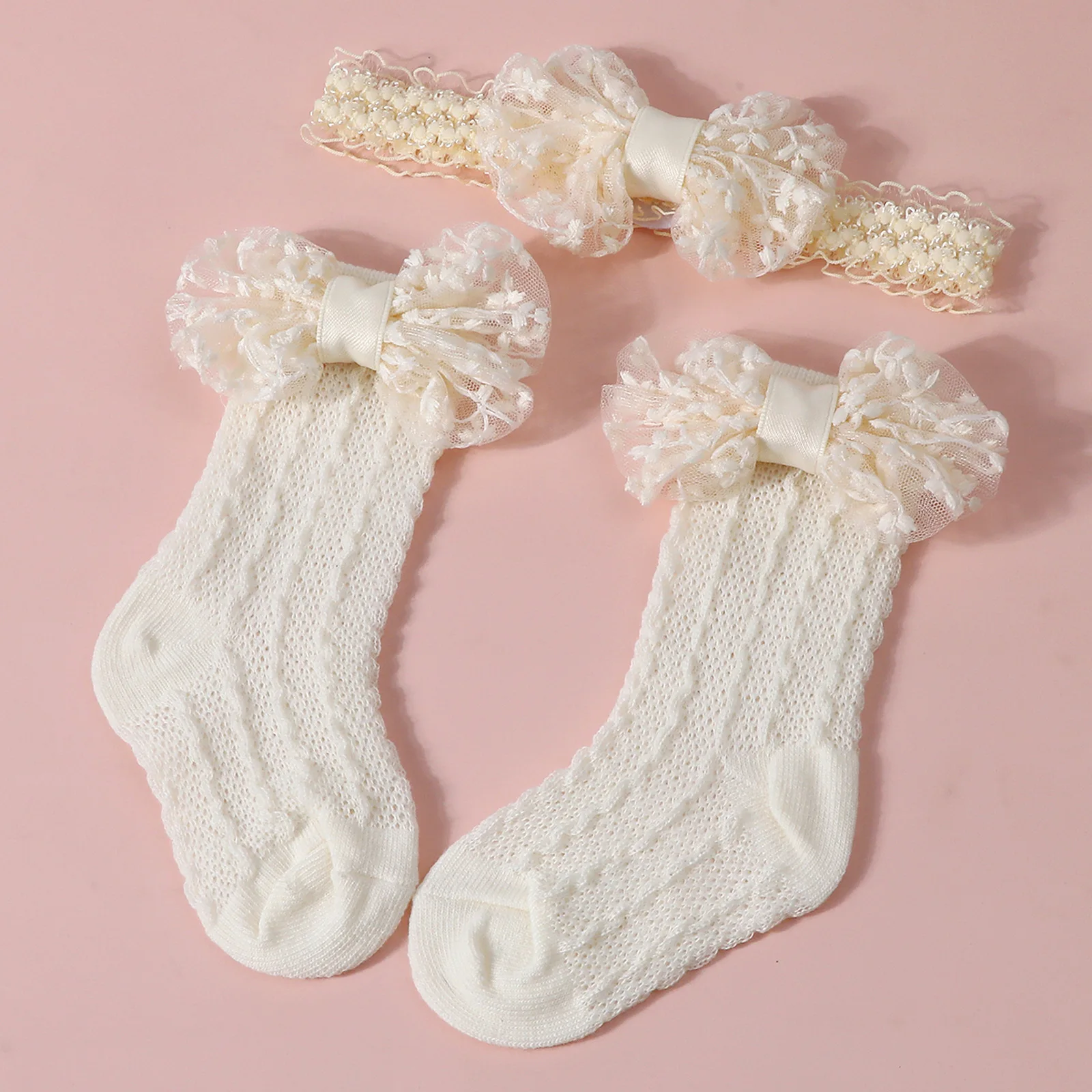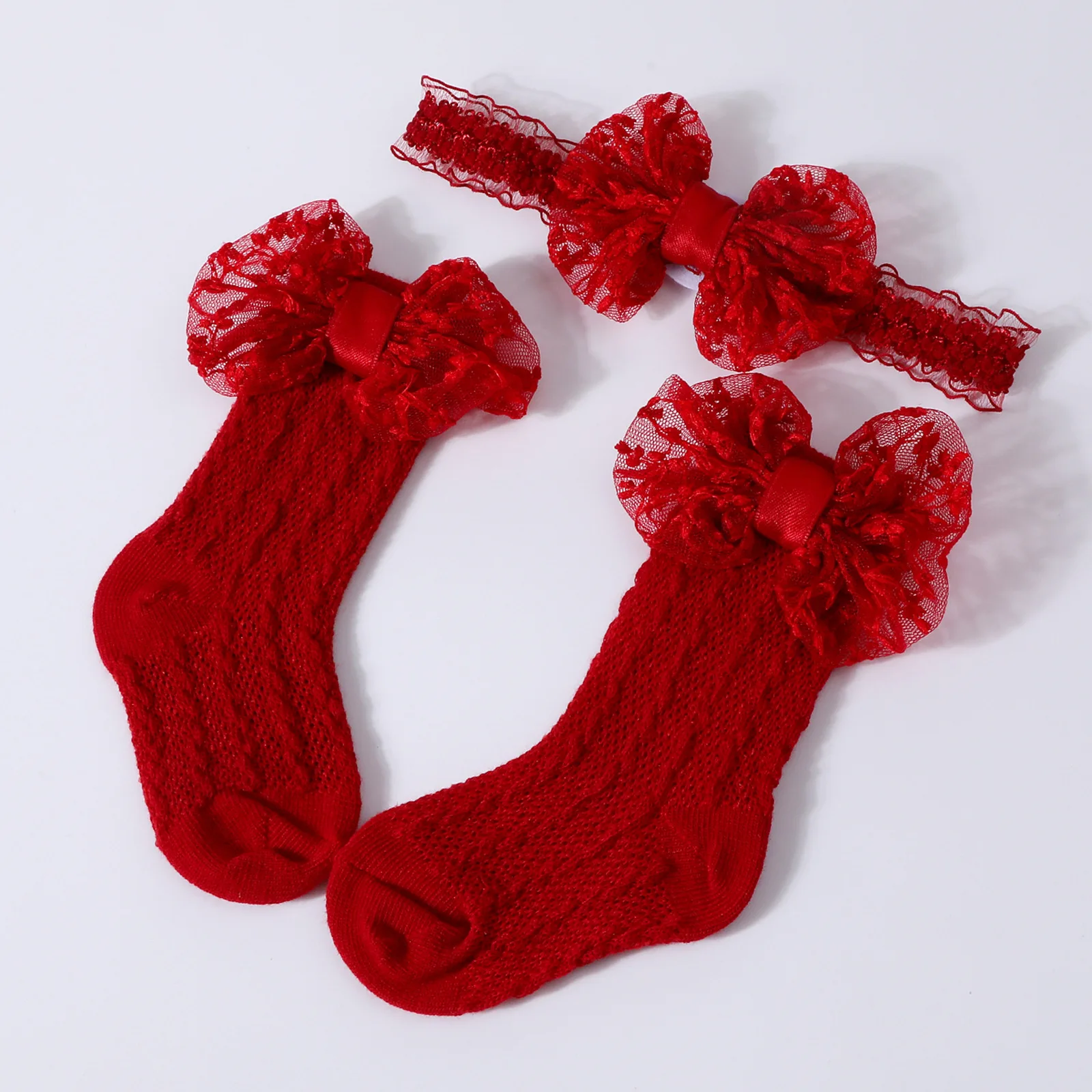 Calcetines de punto Jacquard para bebé, conjunto de diadema de Color sólido con lazo grande, calzado para recién nacido, accesorios de fotografía para niñas y niños