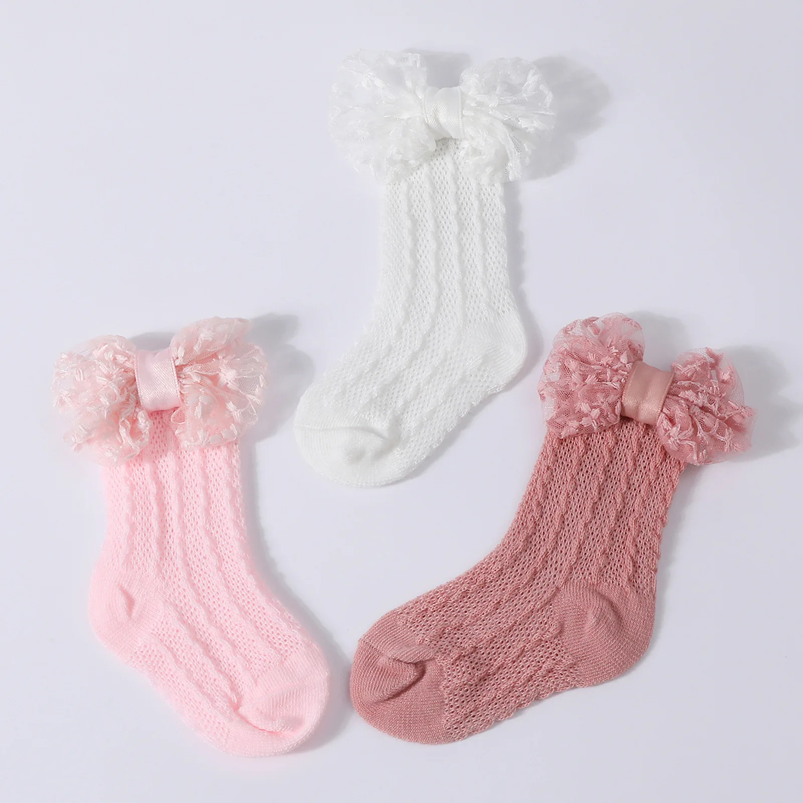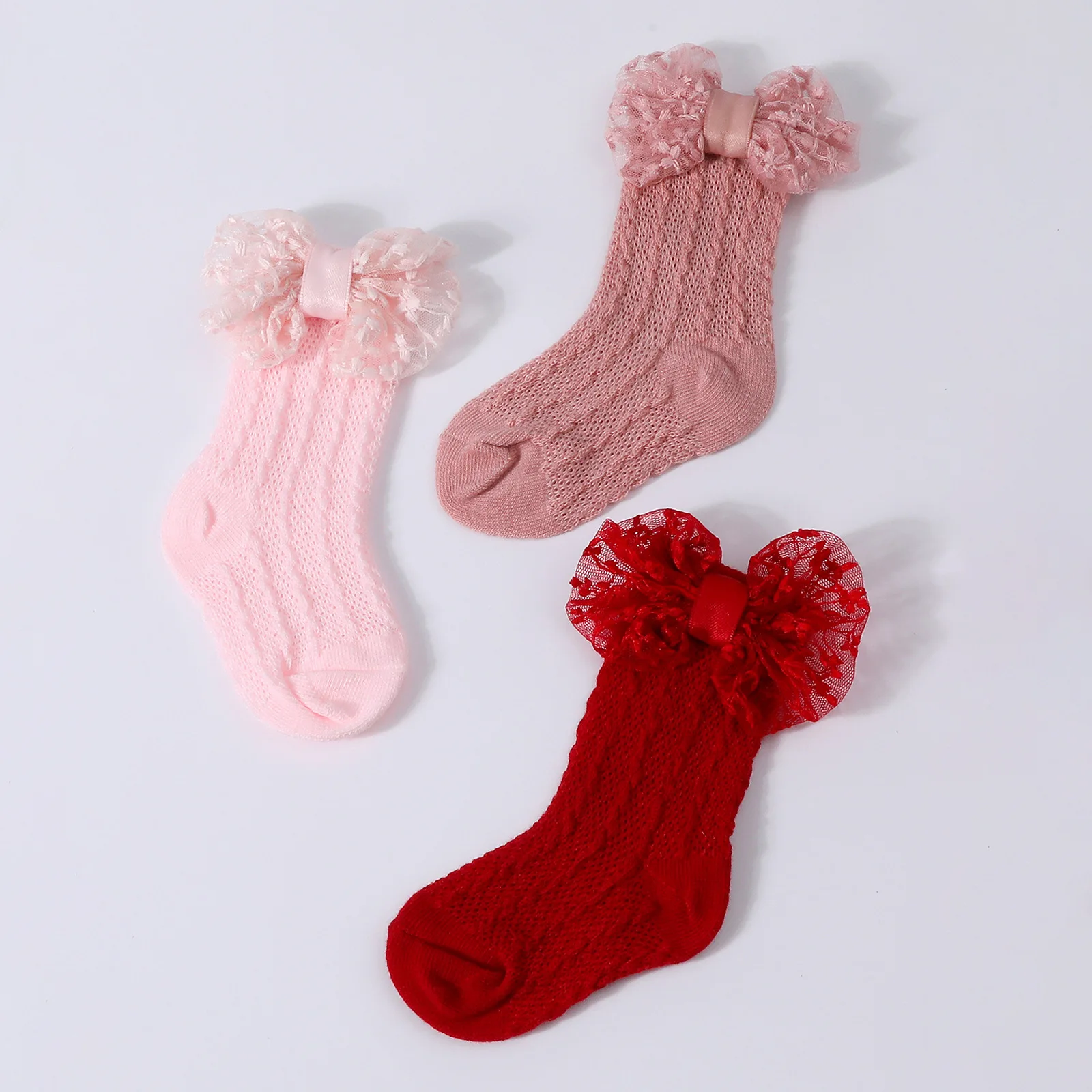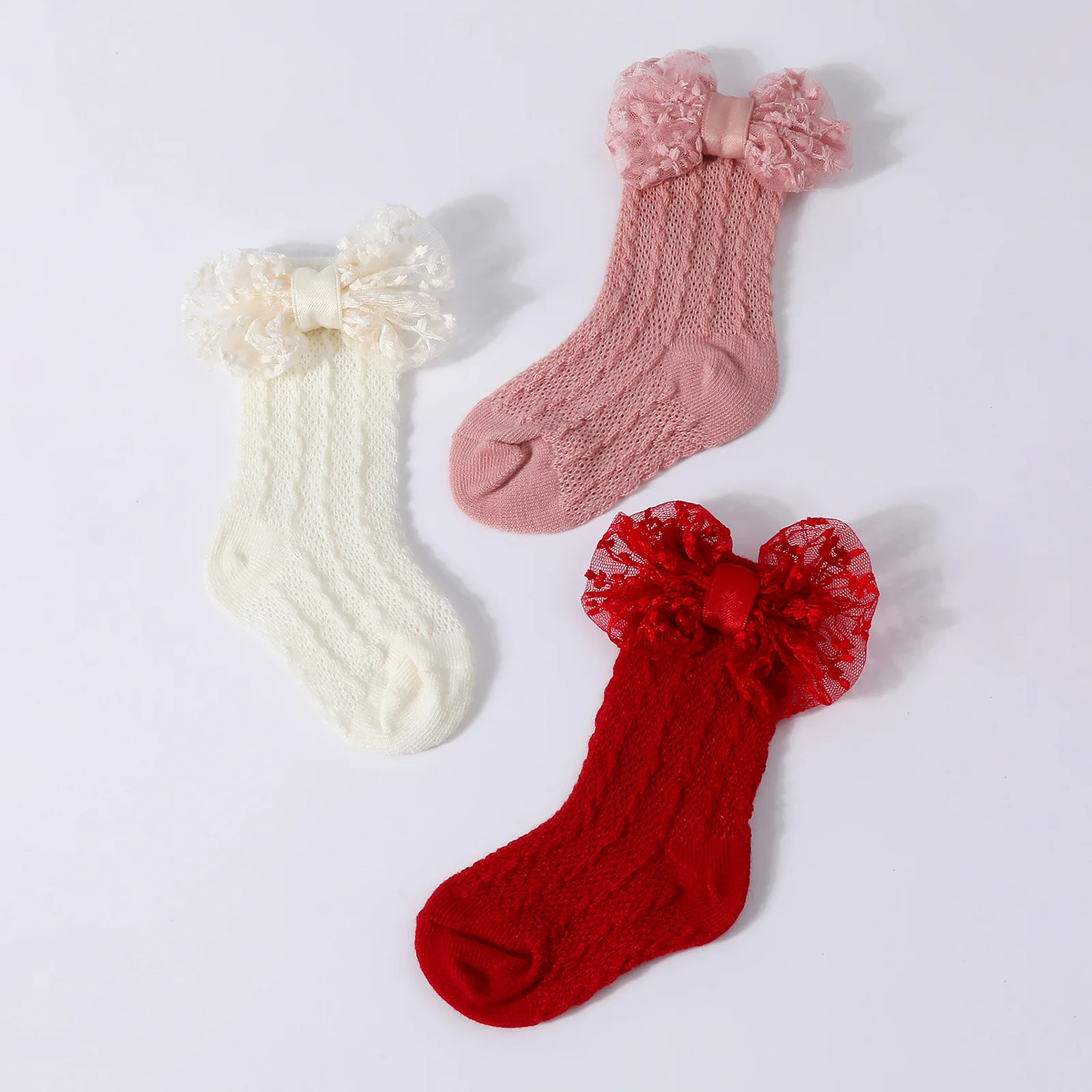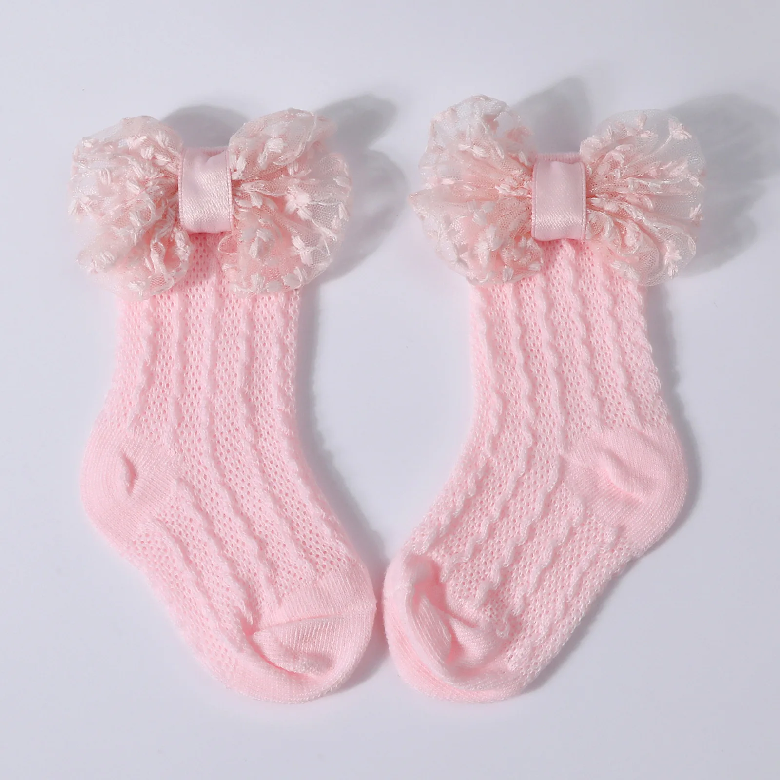 Calcetines de punto Jacquard para bebé, conjunto de diadema de Color sólido con lazo grande, calzado para recién nacido, accesorios de fotografía para niñas y niños