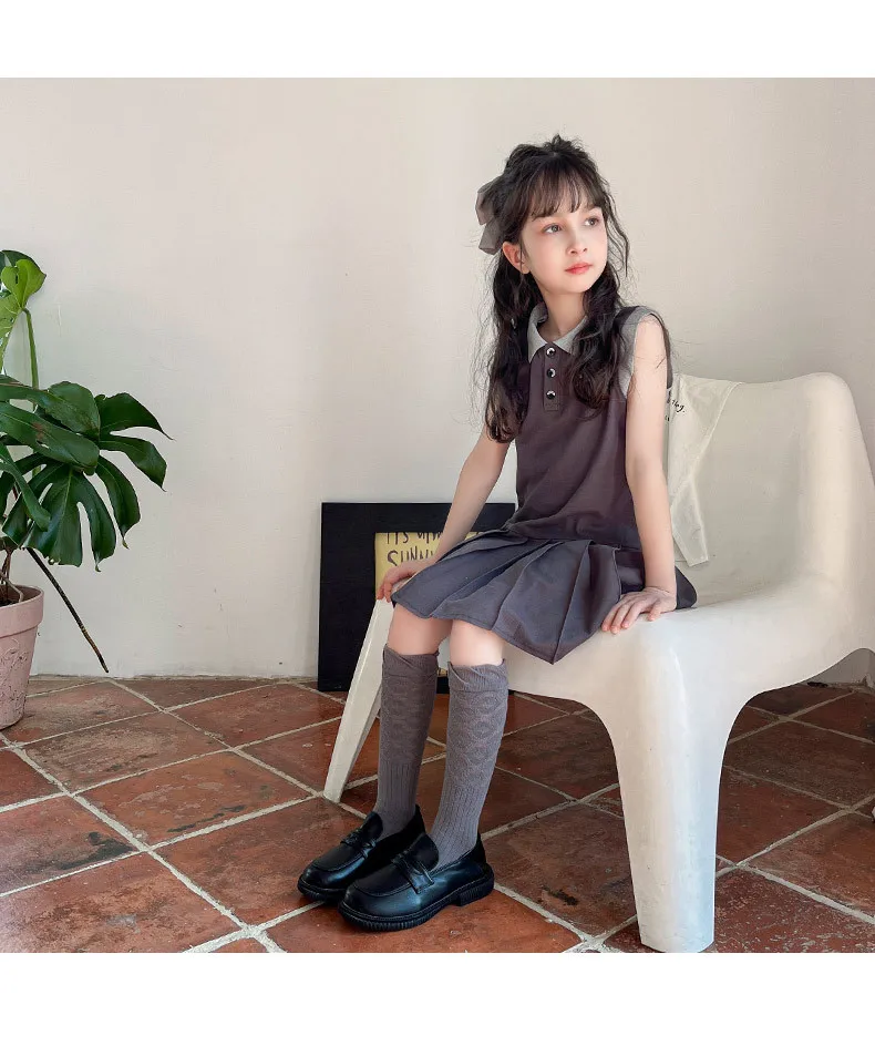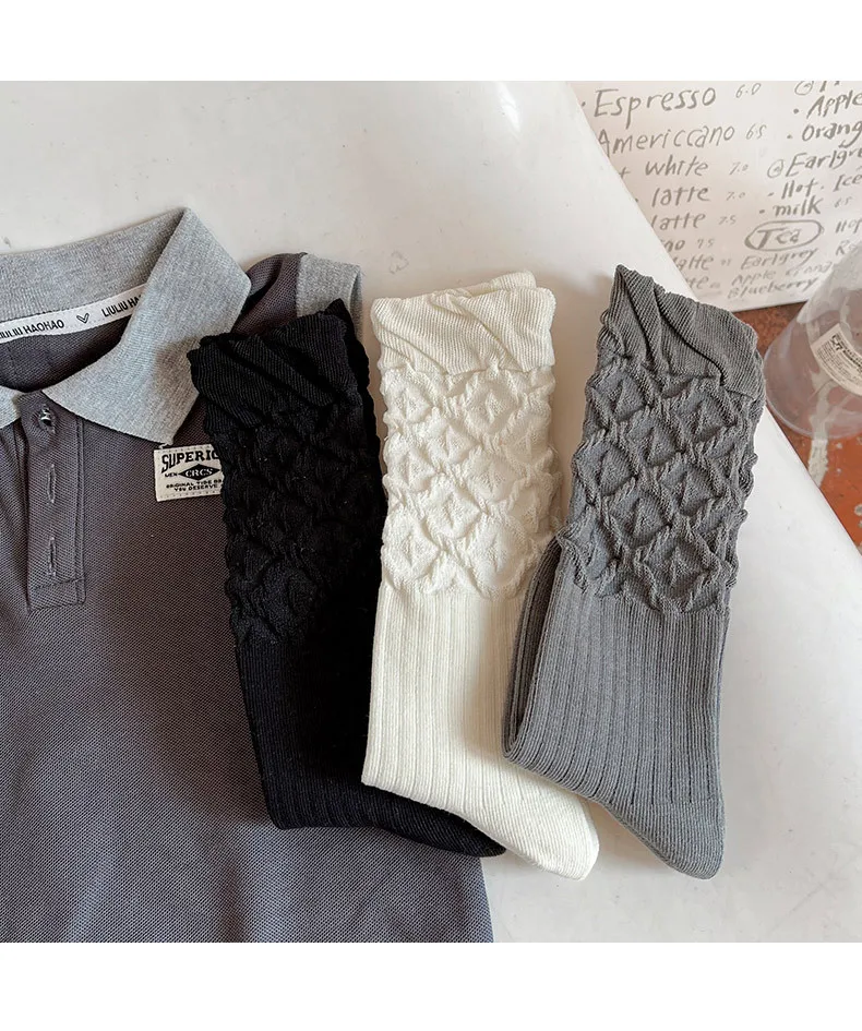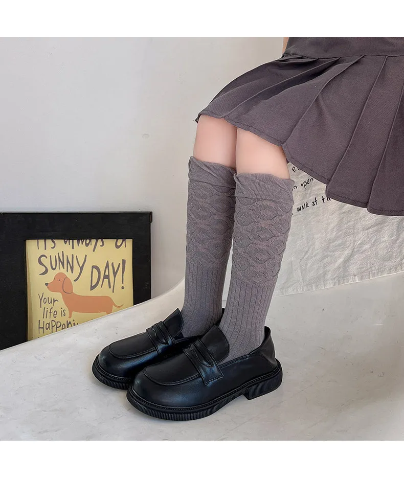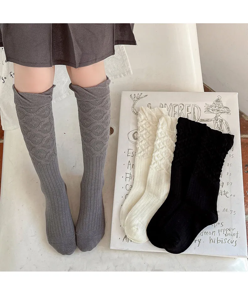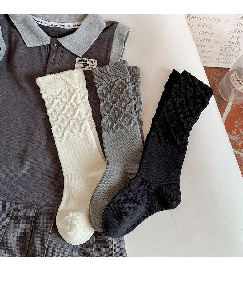 Calcetines hasta la rodilla de algodón peinado para niños, calcetines holgados Vintage con puños de burbujas para niñas, calcetines a media pantorrilla de estilo japonés sin costuras para primavera y otoño