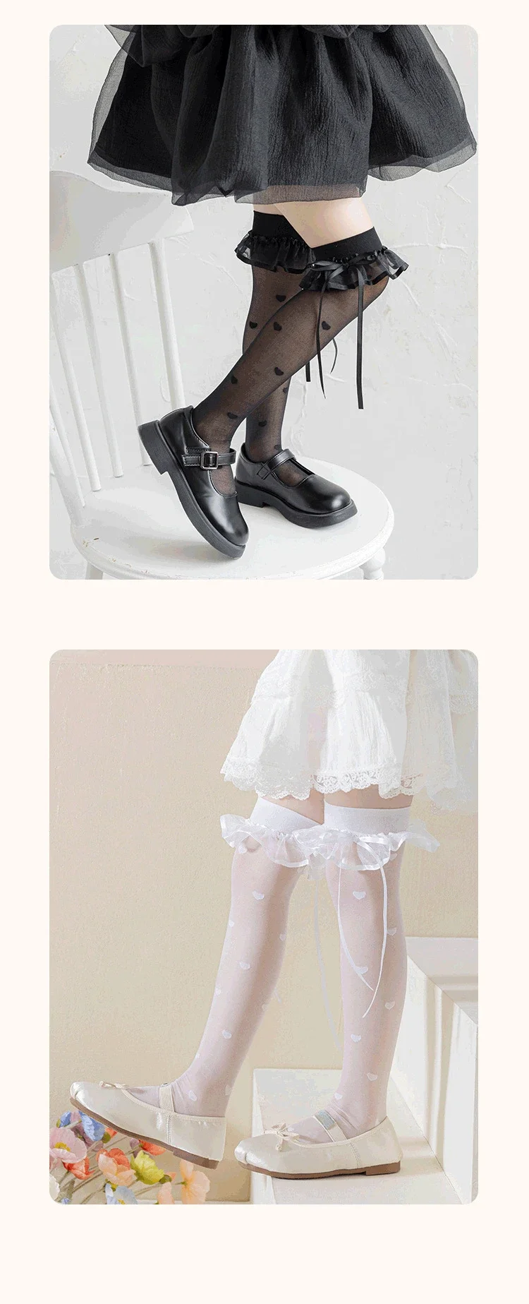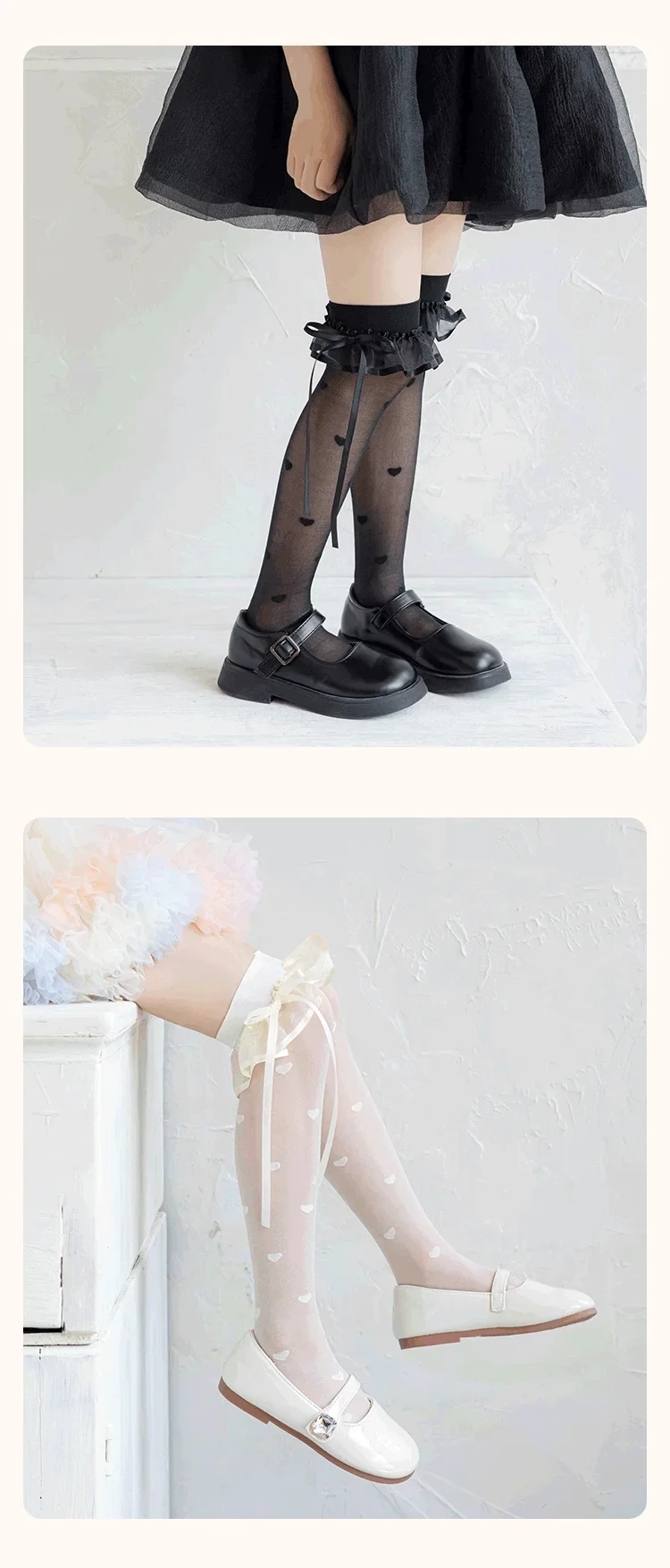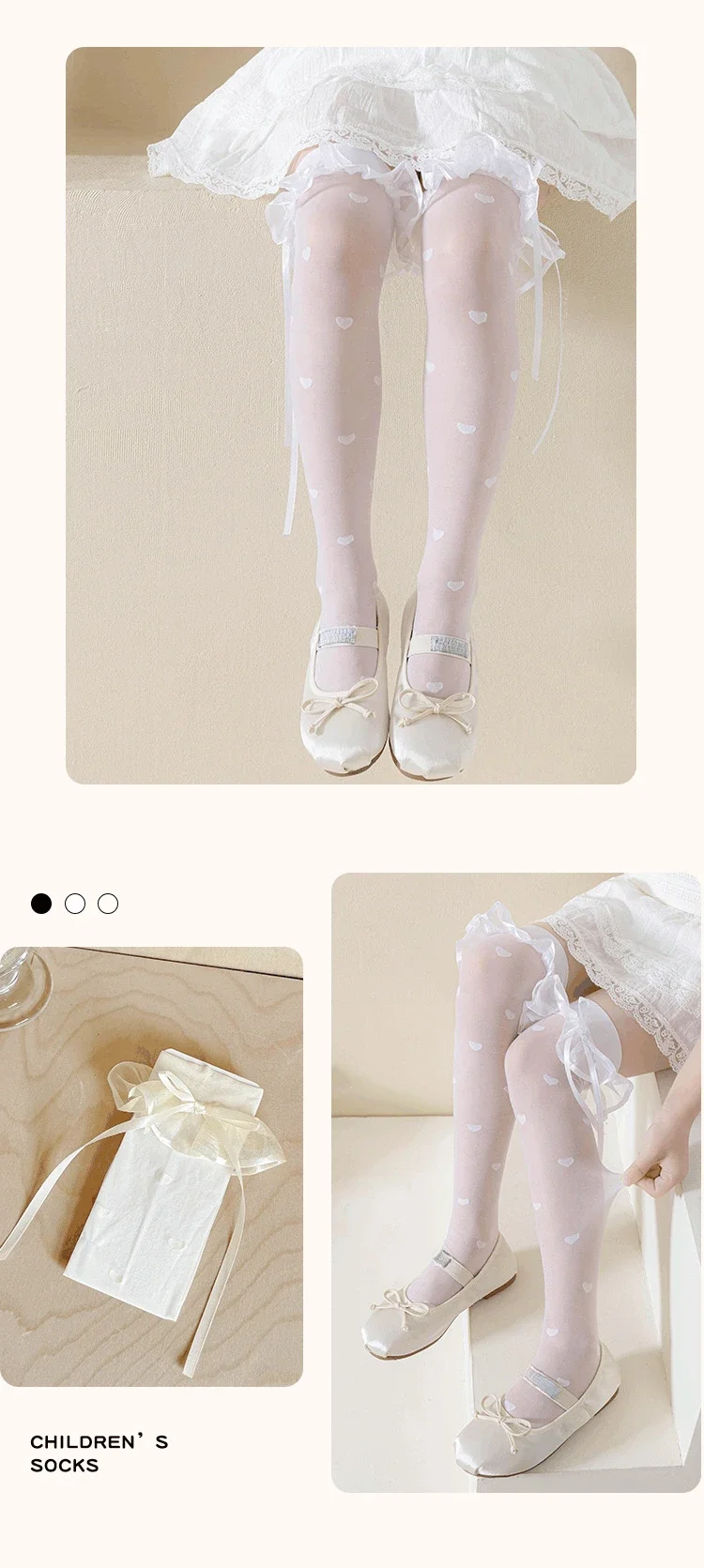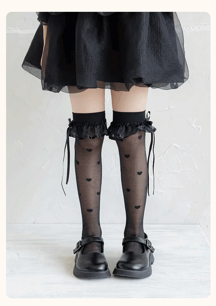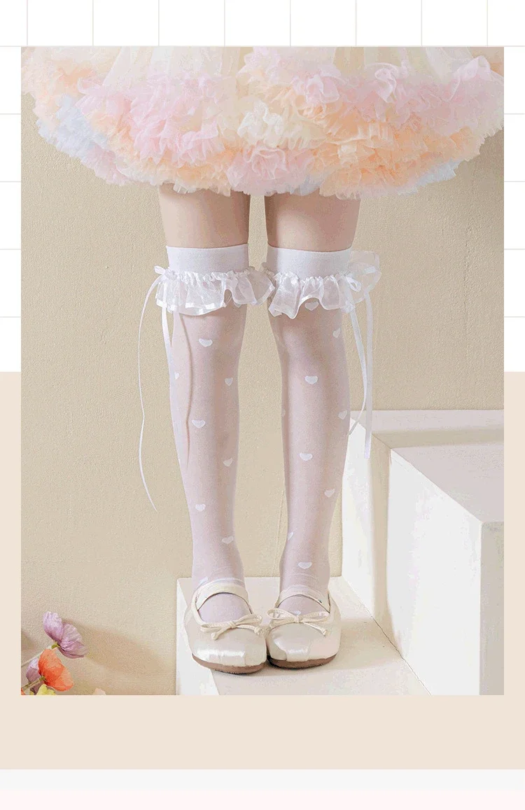 Calcetines hasta la rodilla finos y transpirables de verano para niños y niñas, calcetín coreano a la moda con puntos y corazón hasta la rodilla, calcetín escolar de algodón y nailon suave - imagen 4