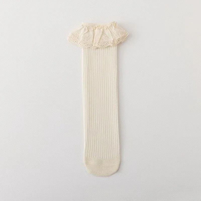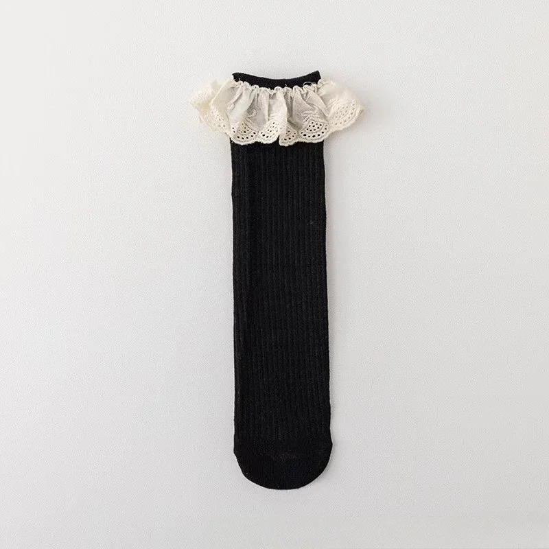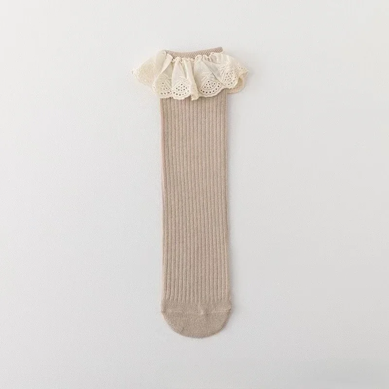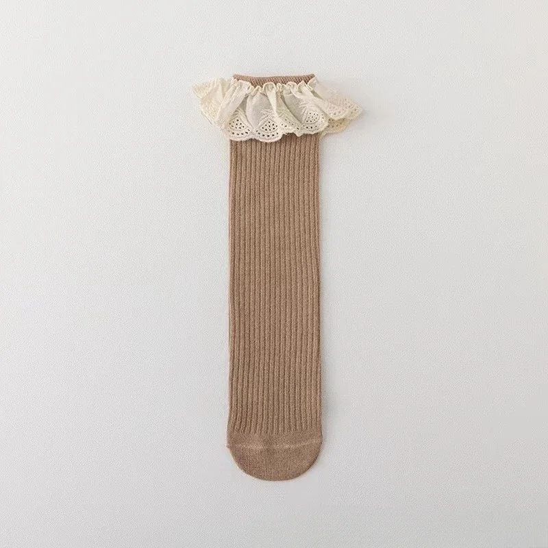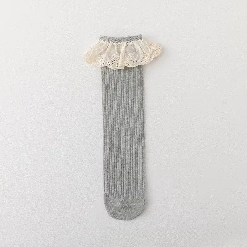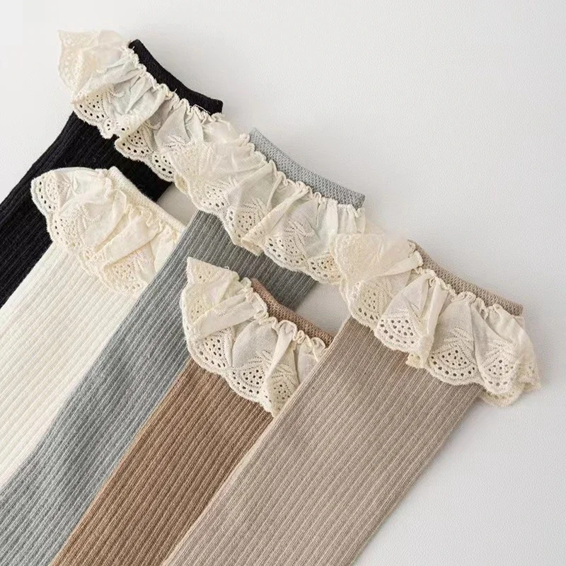 Comprar Calcetines hasta la rodilla para niñas, calcetines largos de algodón suave con encaje, calcetines de princesa para niños de 0 a 8 años, calentadores de piernas, calcetines bonitos para niñas
