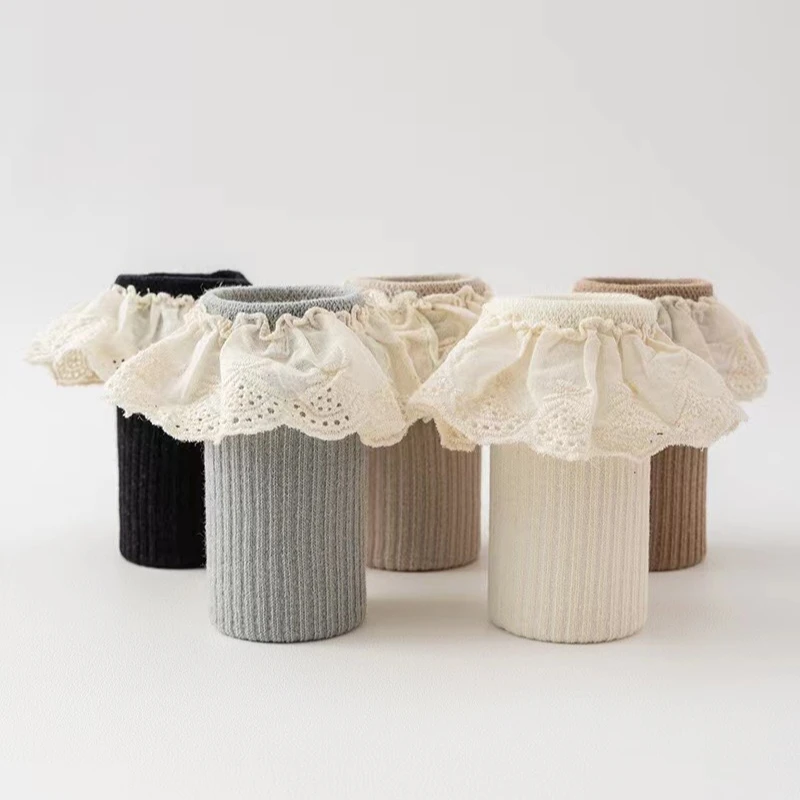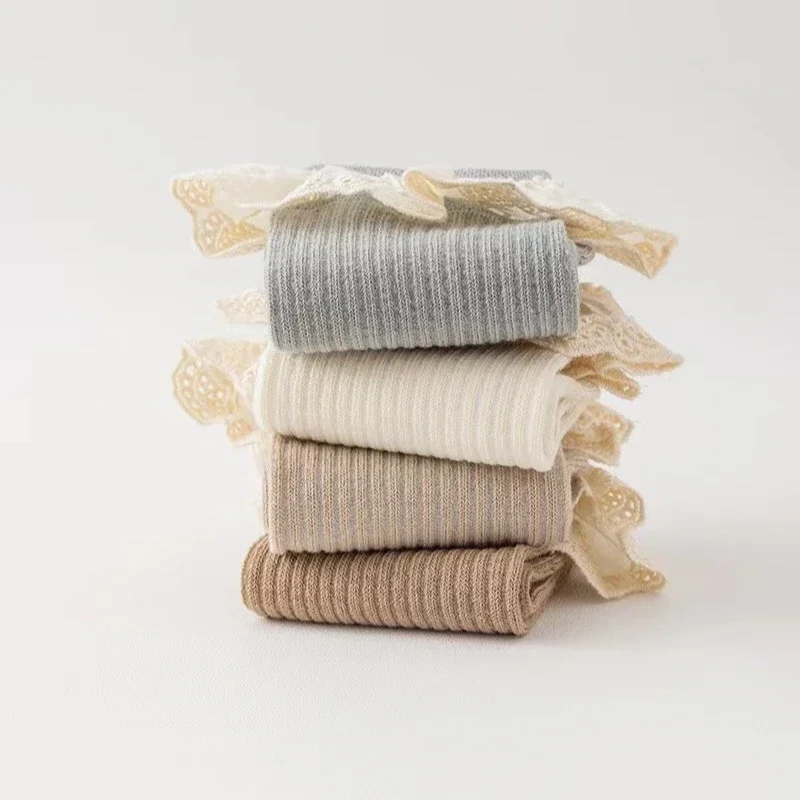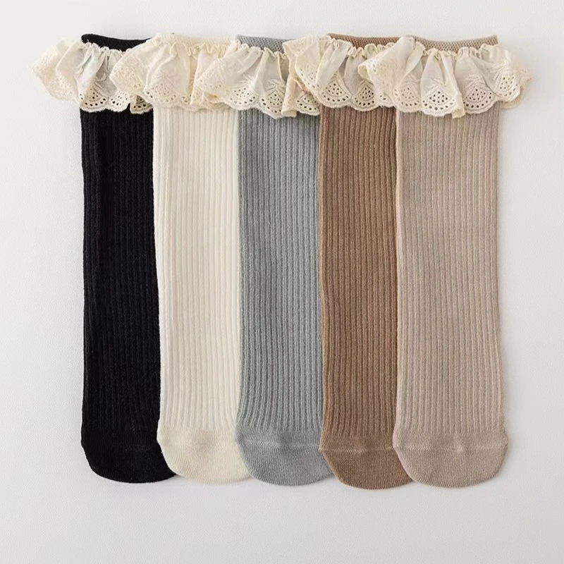 Comprar Calcetines hasta la rodilla para niñas, calcetines largos de algodón suave con encaje, calcetines de princesa para niños de 0 a 8 años, calentadores de piernas, calcetines bonitos para niñas