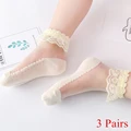 Comprar Calcetines de seda para niños, medias de flores finas, transpirables, malla sólida, 2 a 12 años, lote de 3 pares