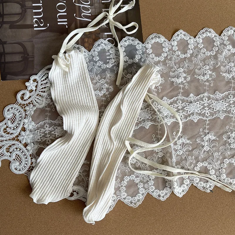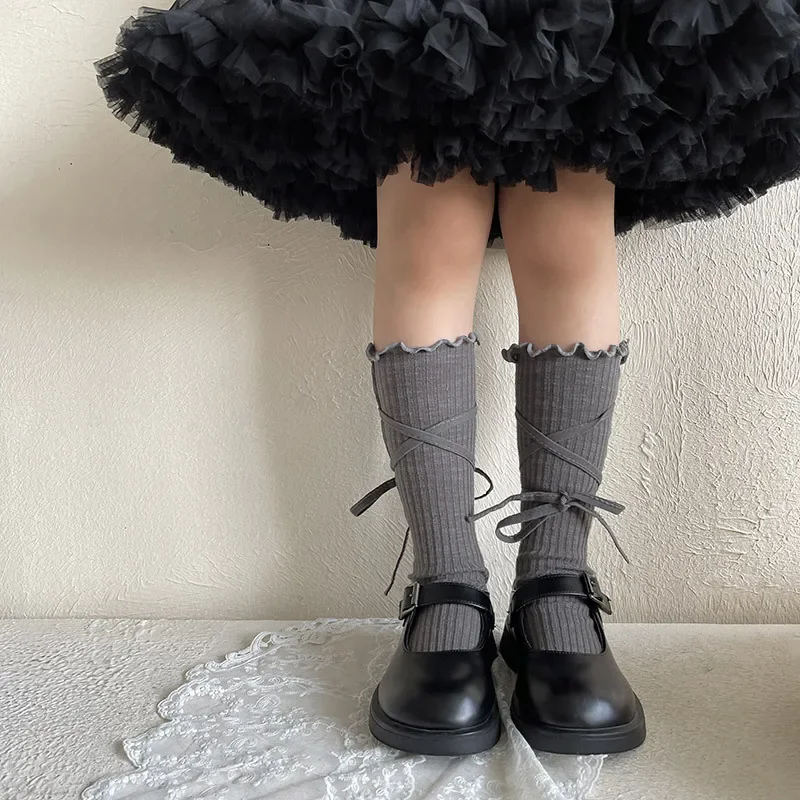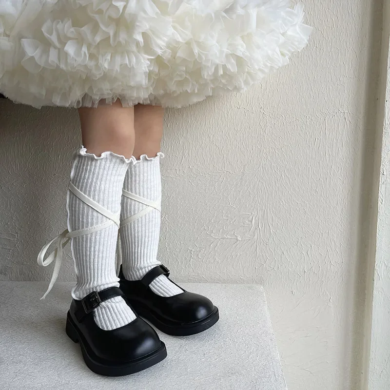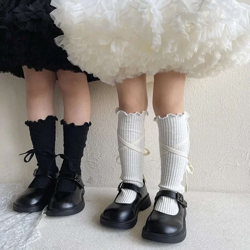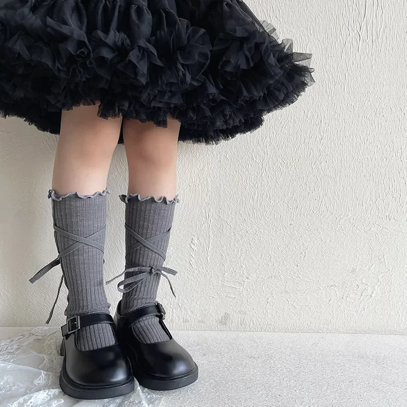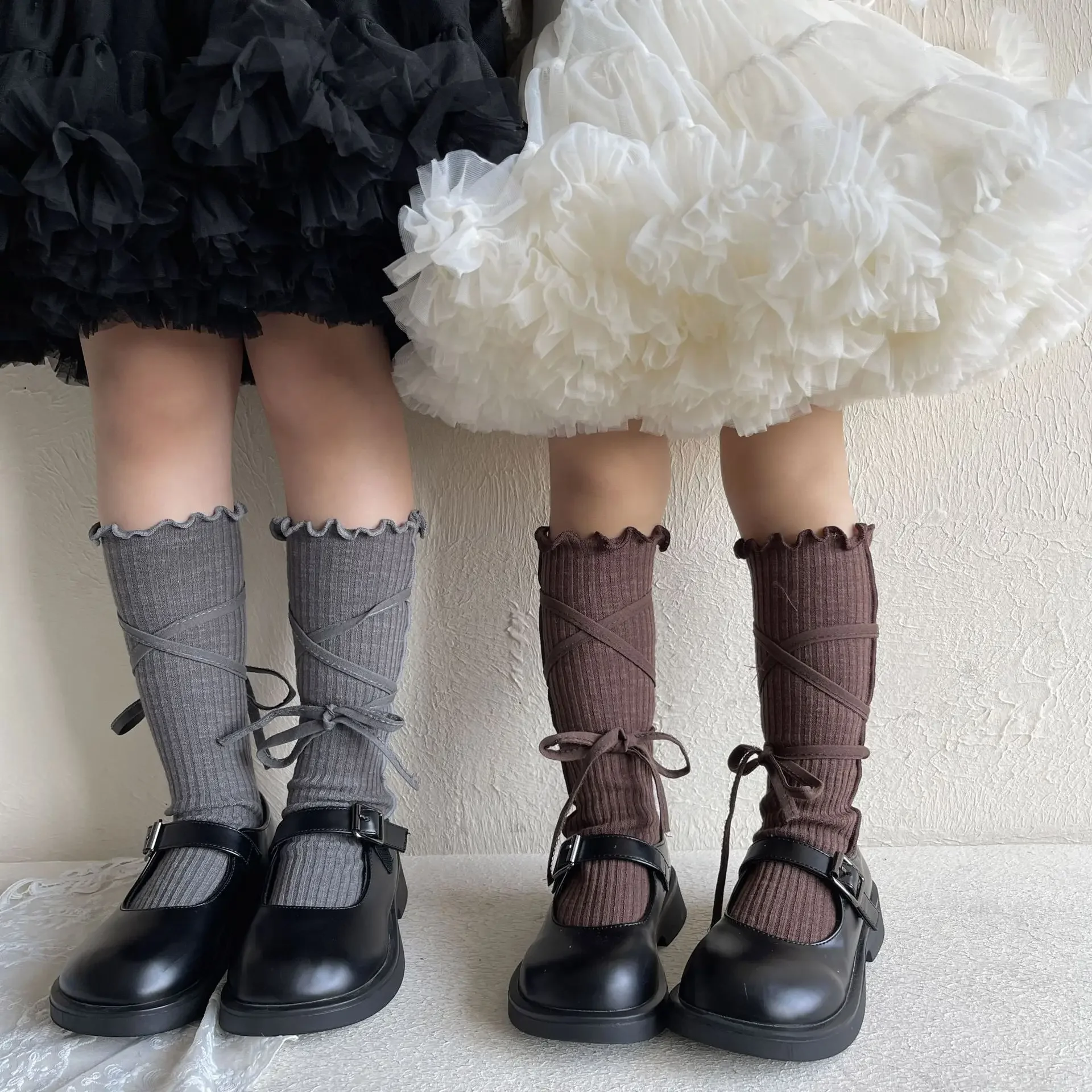 Calcetines sencillos para niños y niñas, calcetín coreano de moda de Color sólido con lazo y volantes hasta la pantorrilla, calcetín escolar de algodón suave para otoño