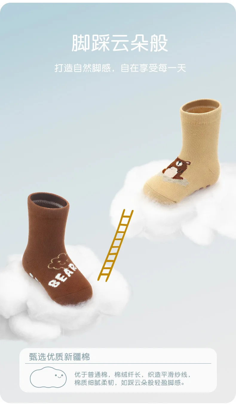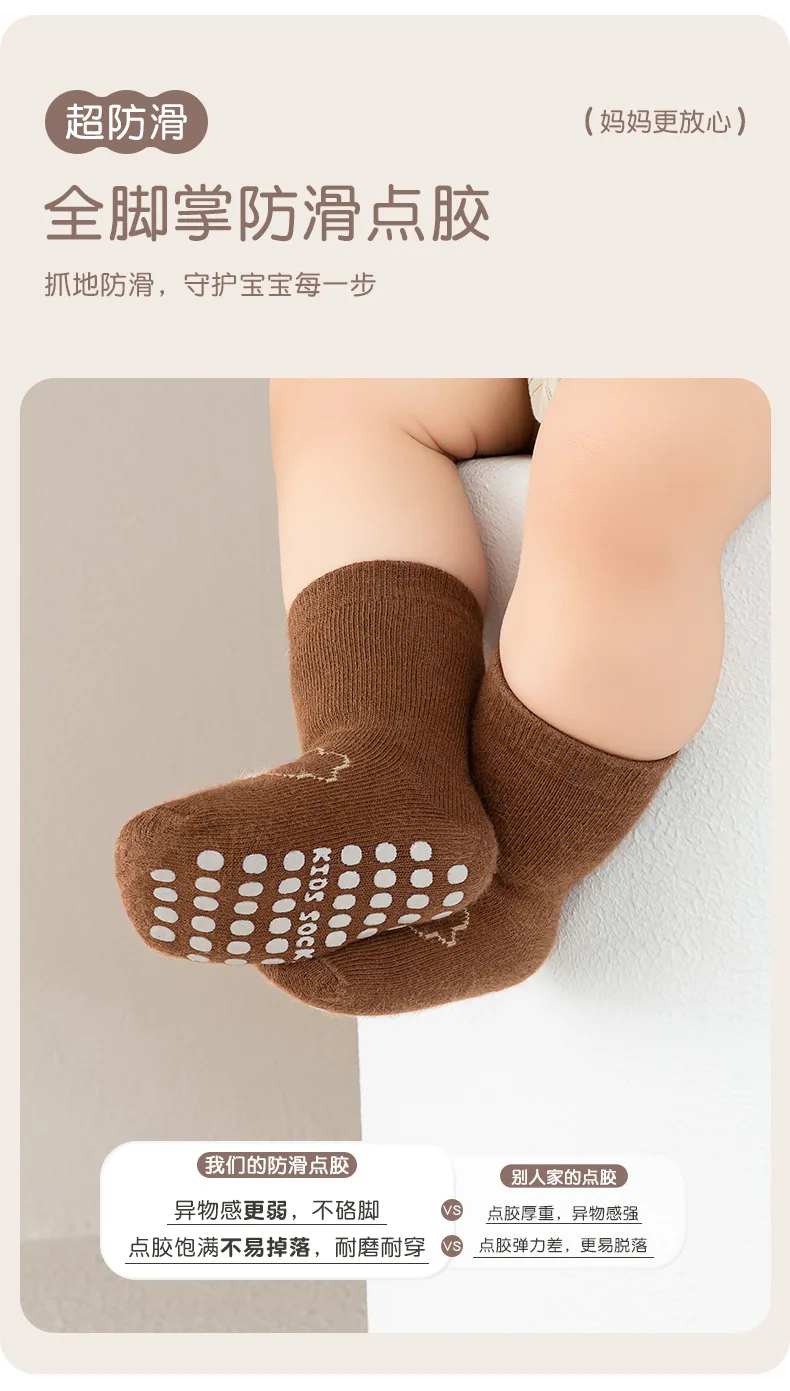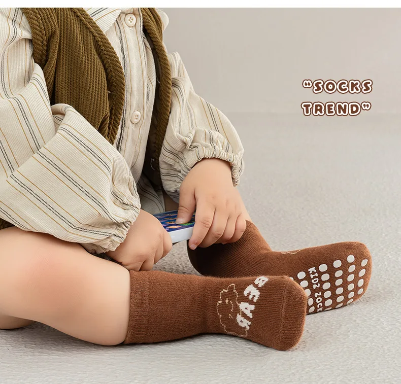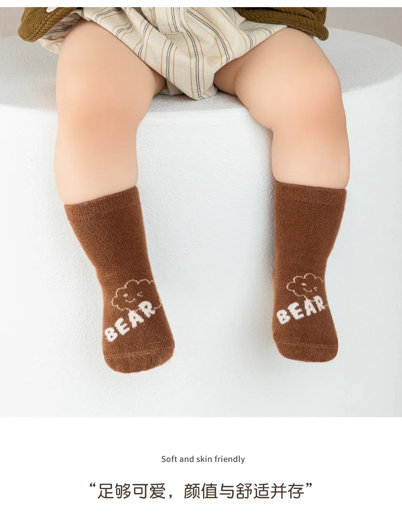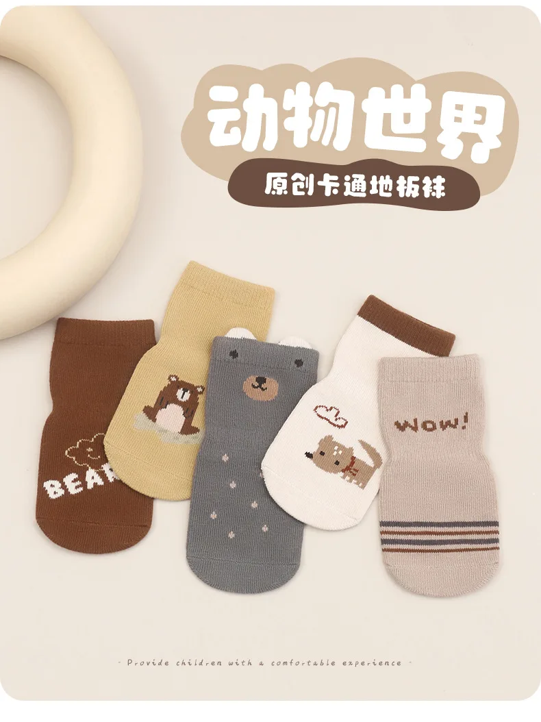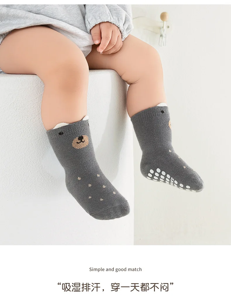 Comprar Calcetines de suelo de dibujos animados para bebé, niña y niño de 0 a 5 años, calcetines suaves de algodón antideslizantes de longitud media para niños, calcetín interior de oso zorro para Otoño e Invierno