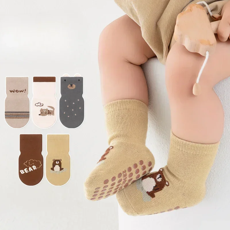 Comprar Calcetines de suelo de dibujos animados para bebé, niña y niño de 0 a 5 años, calcetines suaves de algodón antideslizantes de longitud media para niños, calcetín interior de oso zorro para Otoño e Invierno