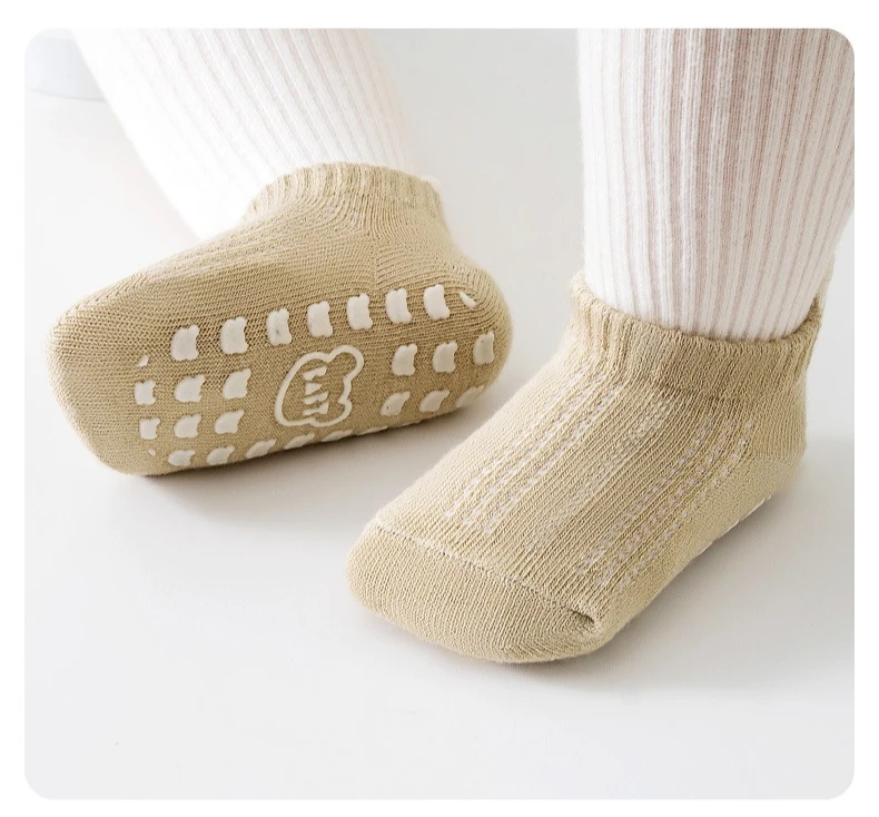Calcetines de suelo para recién nacidos, calcetines cortos antideslizantes con bonitos dibujos para niños y niñas, calcetines transpirables de algodón para caminar para primavera y otoño de 0 a 3 años