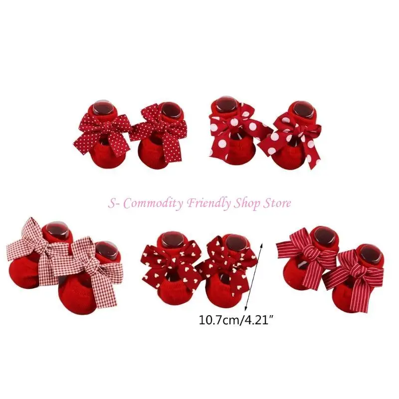 Características:OOTDTYCalcetines de piso para bebé: los calcetines de piso para bebé ofrecen 5 lazos opcionales para seleccionar, calcetines rojos con un bonito lazo, ocio o uniforme, material súper suave y tamaño elástico que protegen bien los pies de su bebé abrigados y adecuados para uso en interiores.
