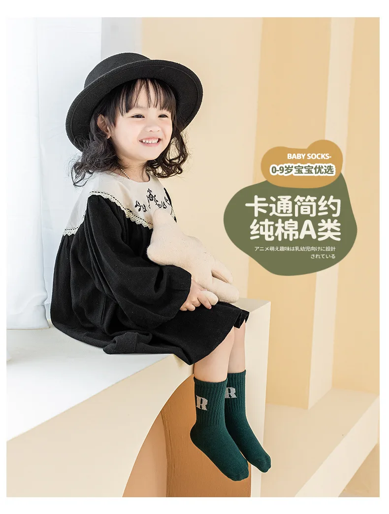 Comprar Calcetines térmicos de algodón para estudiantes, medias de Color sólido con letras blancas para dormir, accesorios para bebés, 2023