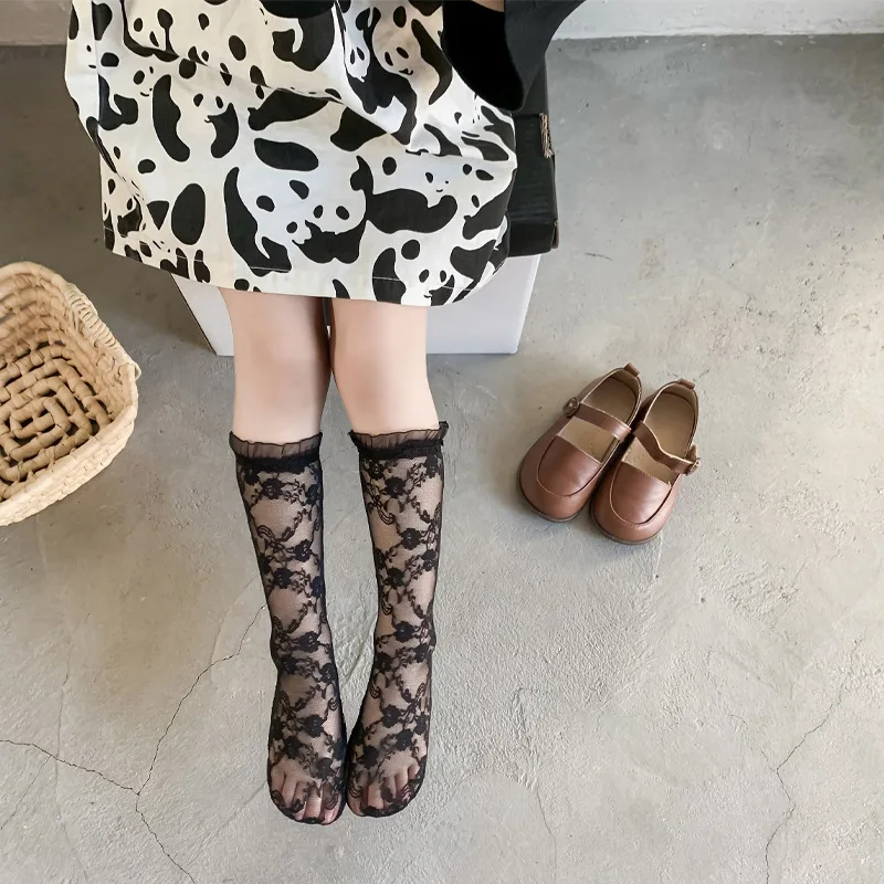 Comprar Calcetines tobilleros finos para niños y niñas, medias cortas de malla con volantes de encaje hasta la rodilla, color blanco, primavera y verano