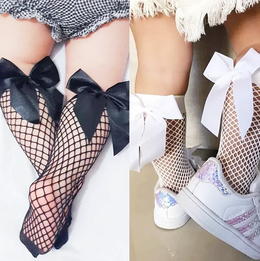 Comprar Calcetines tobilleros de rejilla con lazo para niña, medias de malla con lazo trasero Vintage, novedad de verano, 2023