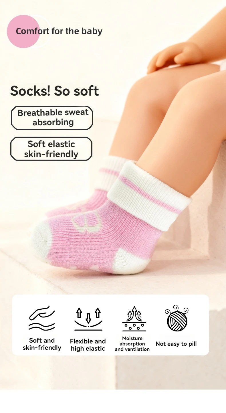 Calcetines de tubo medio para recién nacidos, aislamiento de bucle grueso para bebés, otoño e invierno, 0-6 meses