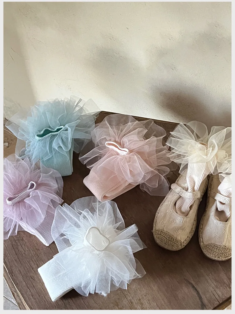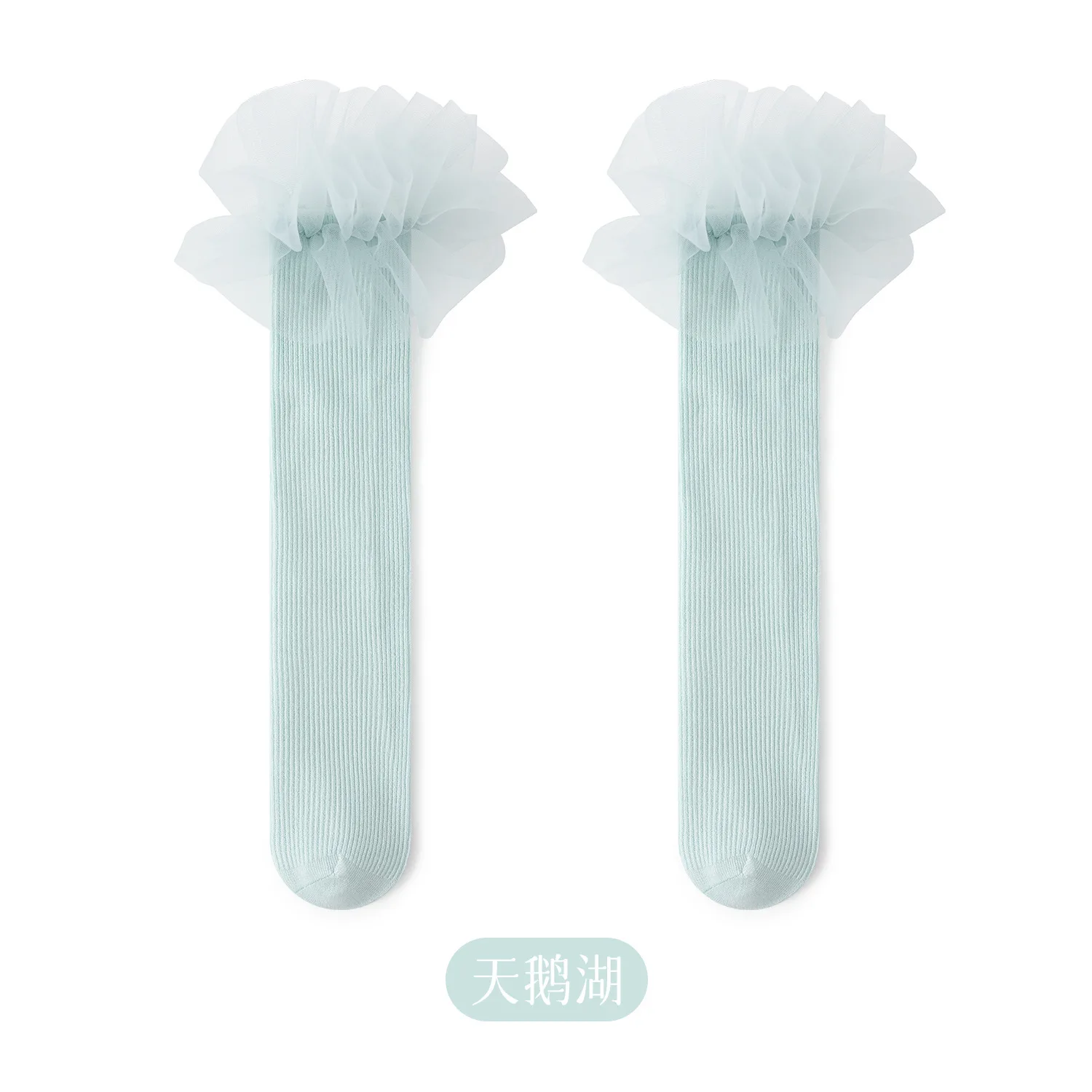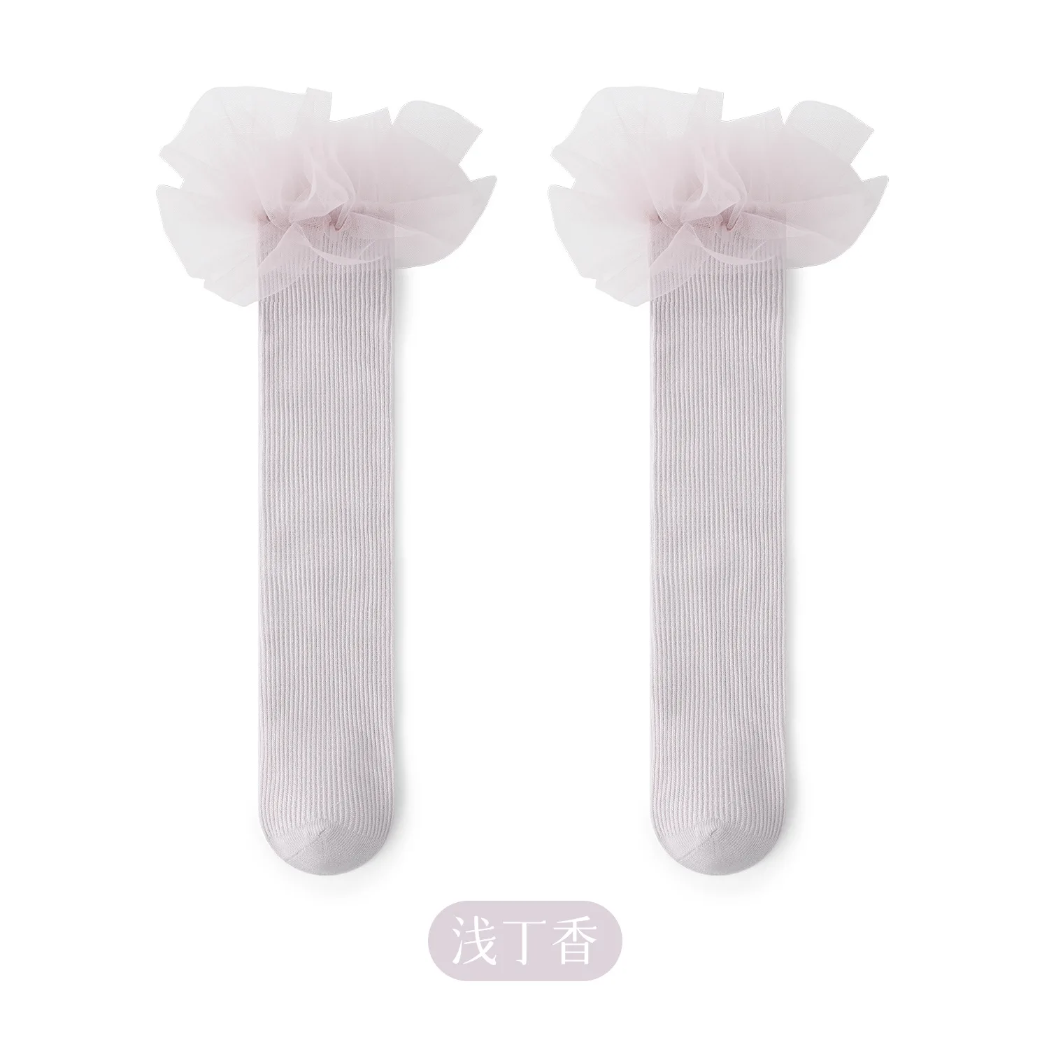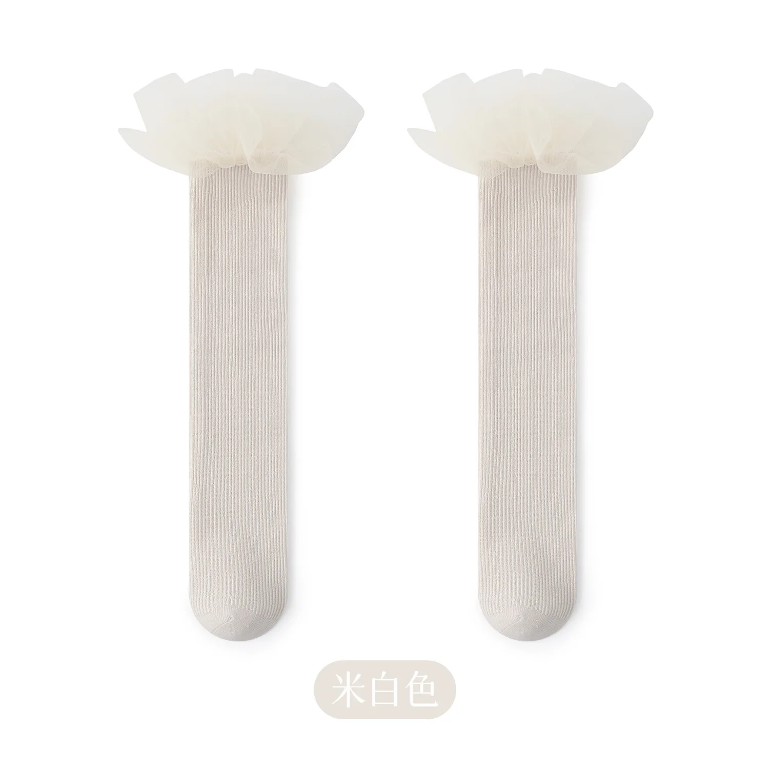Calcetines con volantes de encaje para niñas estilo princesa, calcetines de algodón hasta la pantorrilla para bebés pequeños, primavera y verano, algodón suave, moda dulce, uso diario