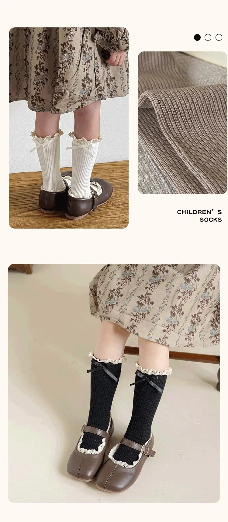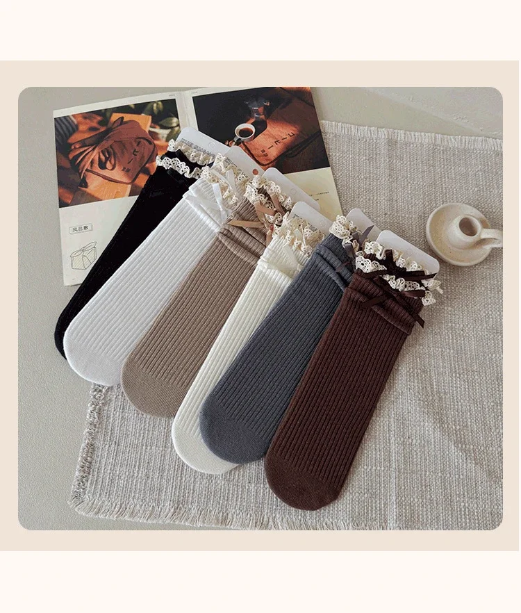 Calcetines con volantes estilo princesa para niñas, calcetines hasta la pantorrilla con lazo de encaje Retro para niños, calcetines largos escolares de algodón suave para primavera y otoño