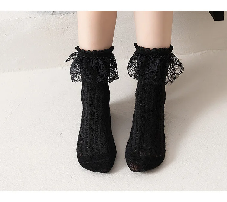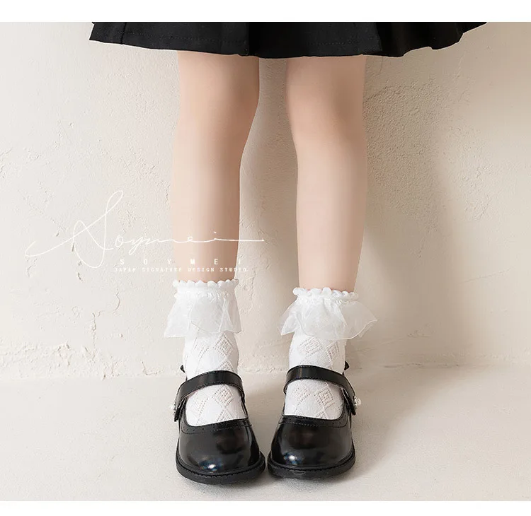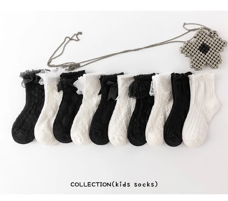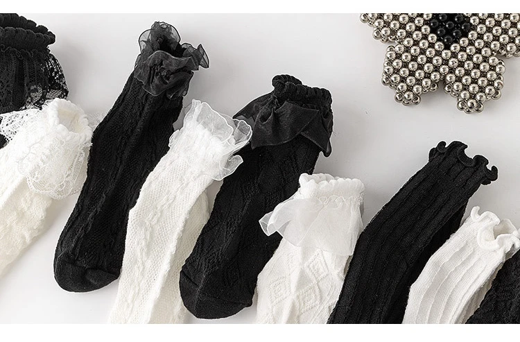 Calcetines con volantes para niña, calcetín de encaje JK para pantorrilla, princesa dulce con volantes, Color blanco y negro, ropa de primavera y verano