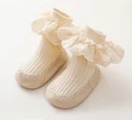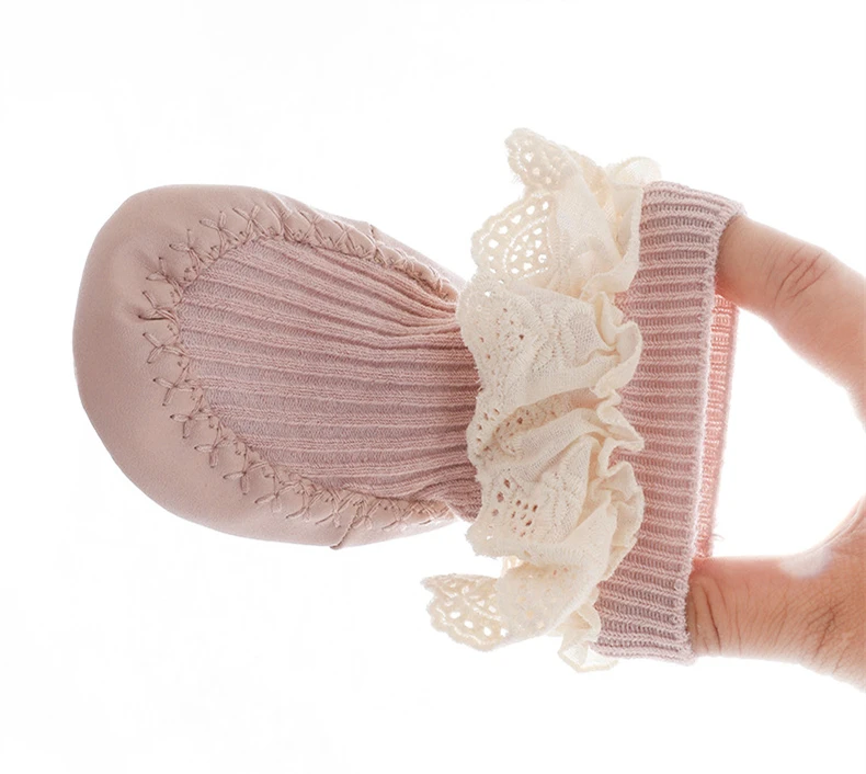 Comprar Calcetines de volantes con suelas de goma para niñas, calcetines para recién nacidos, zapatos de flores de encaje, antideslizantes, suela suave, otoño