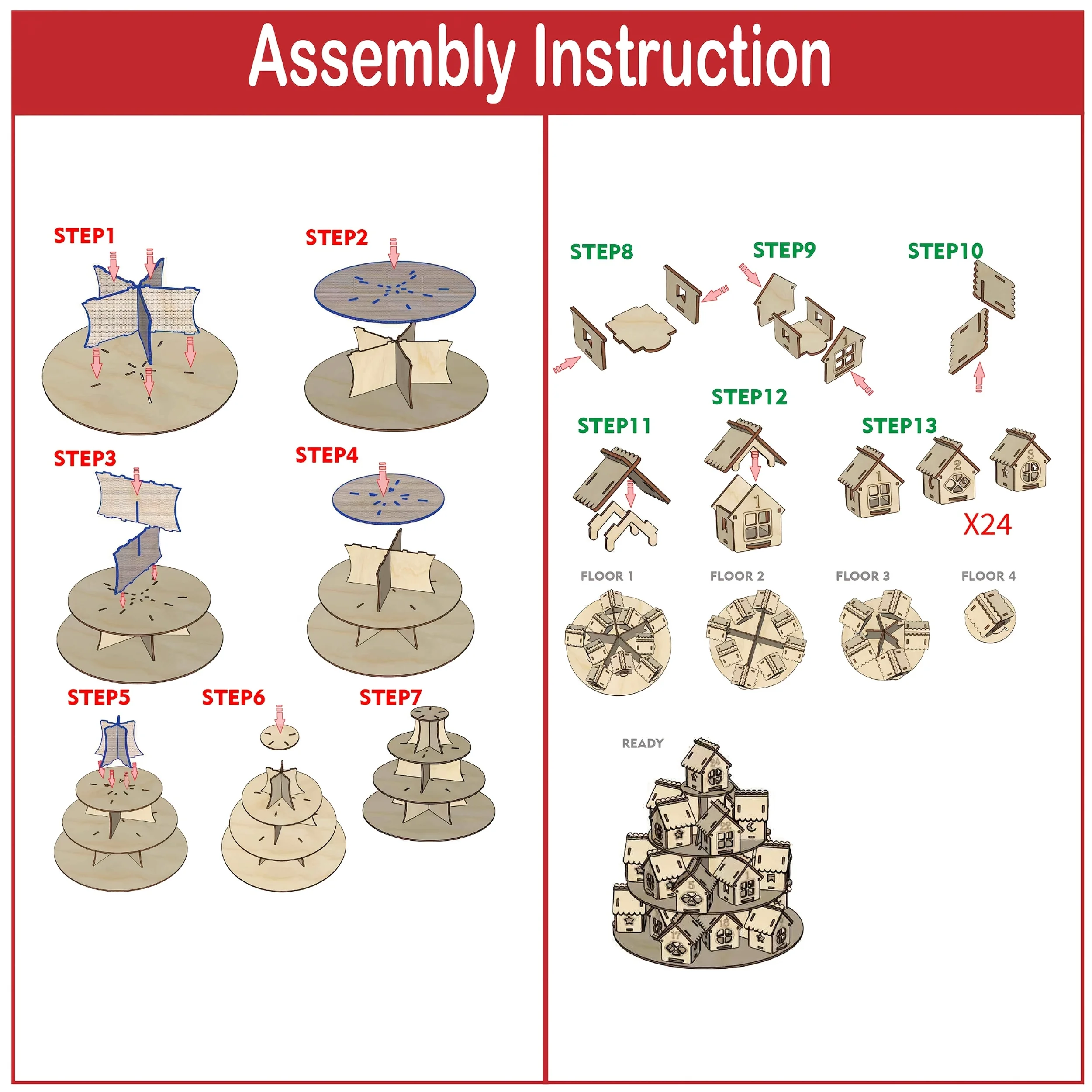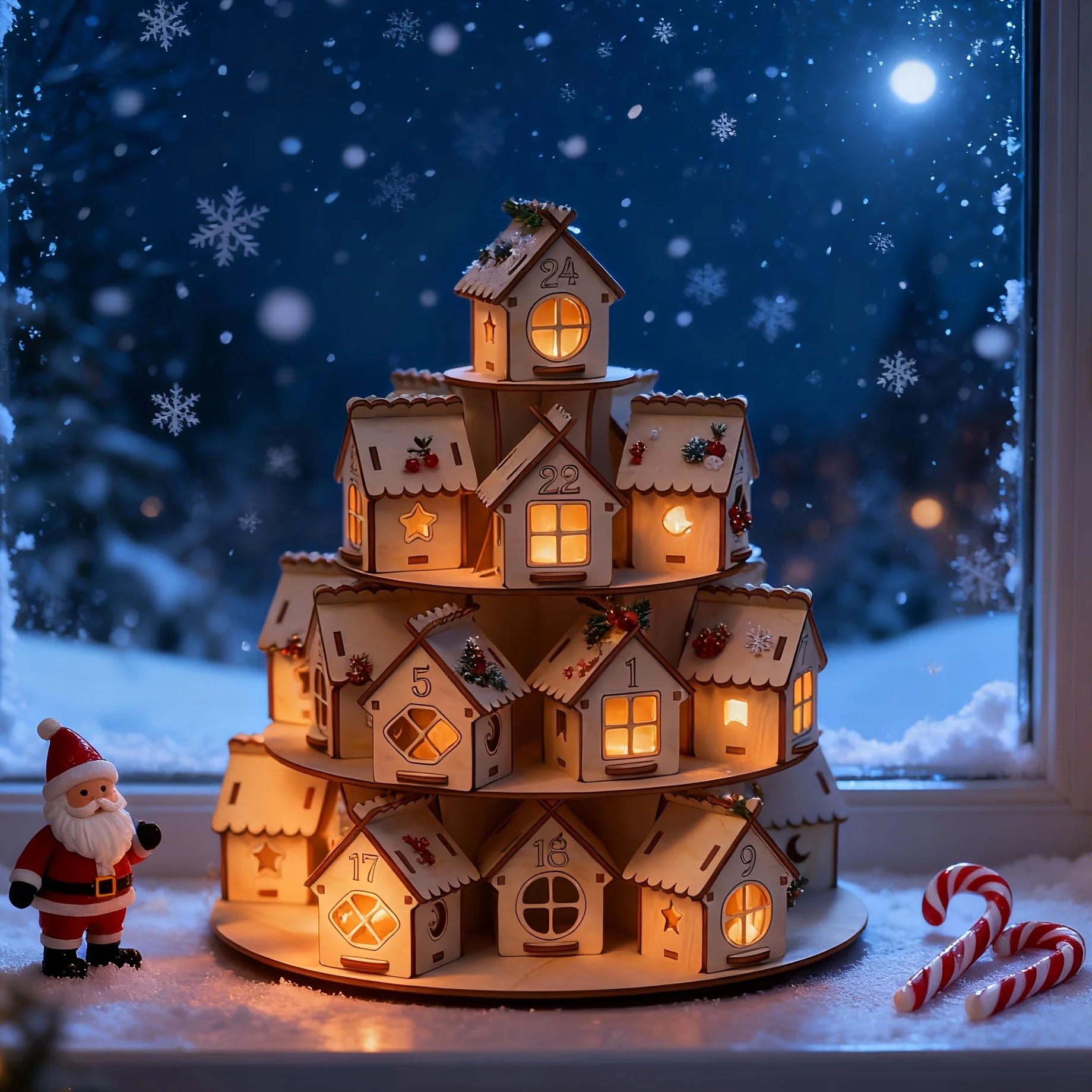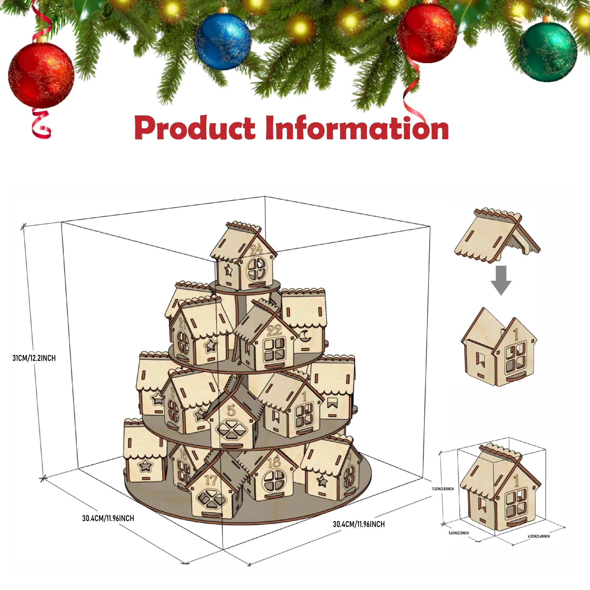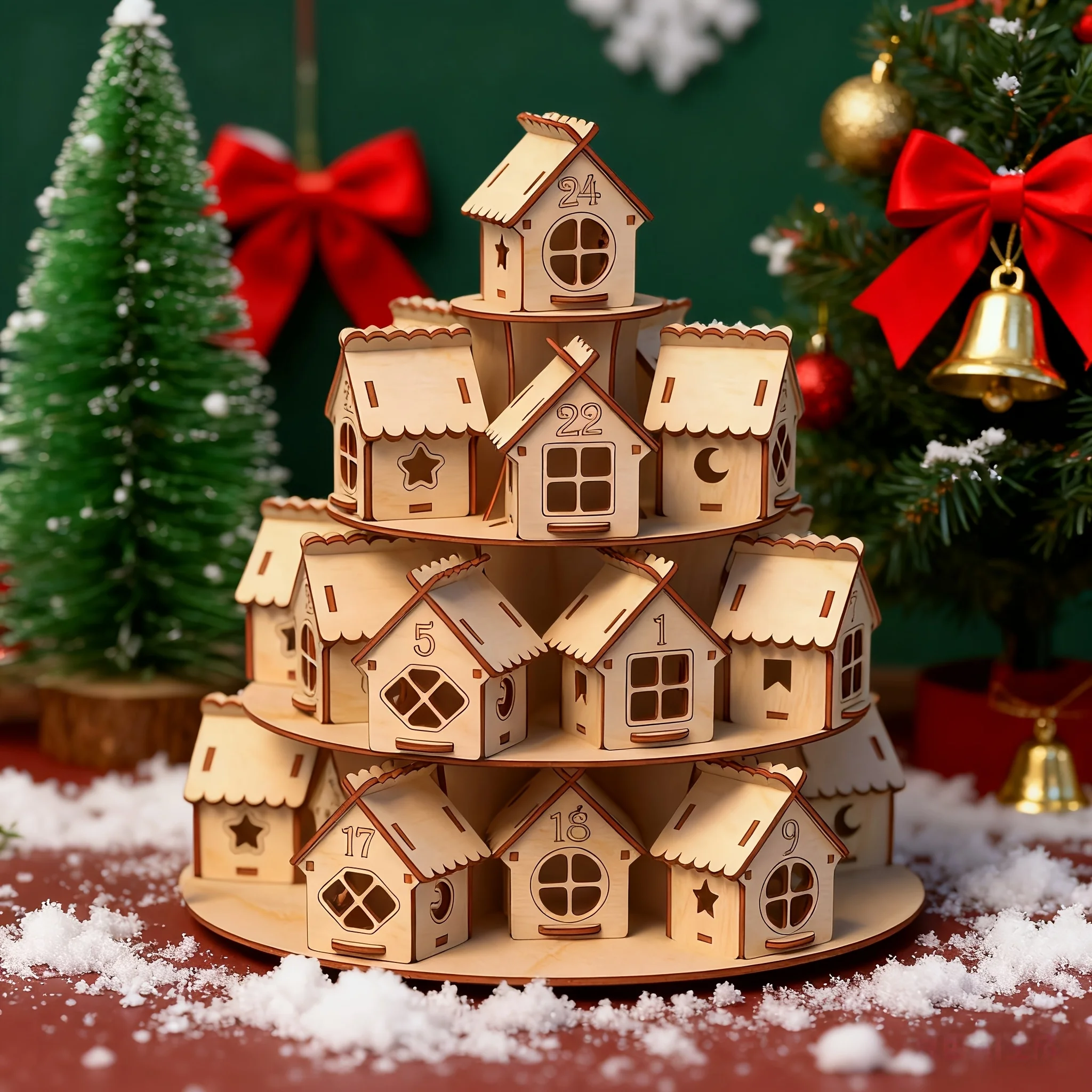 Comprar Calendario de Adviento de madera para Navidad, casa con 24 casas, cuenta atrás para Navidad, regalo Kraft DIY para niños, decoración del hogar familiar
