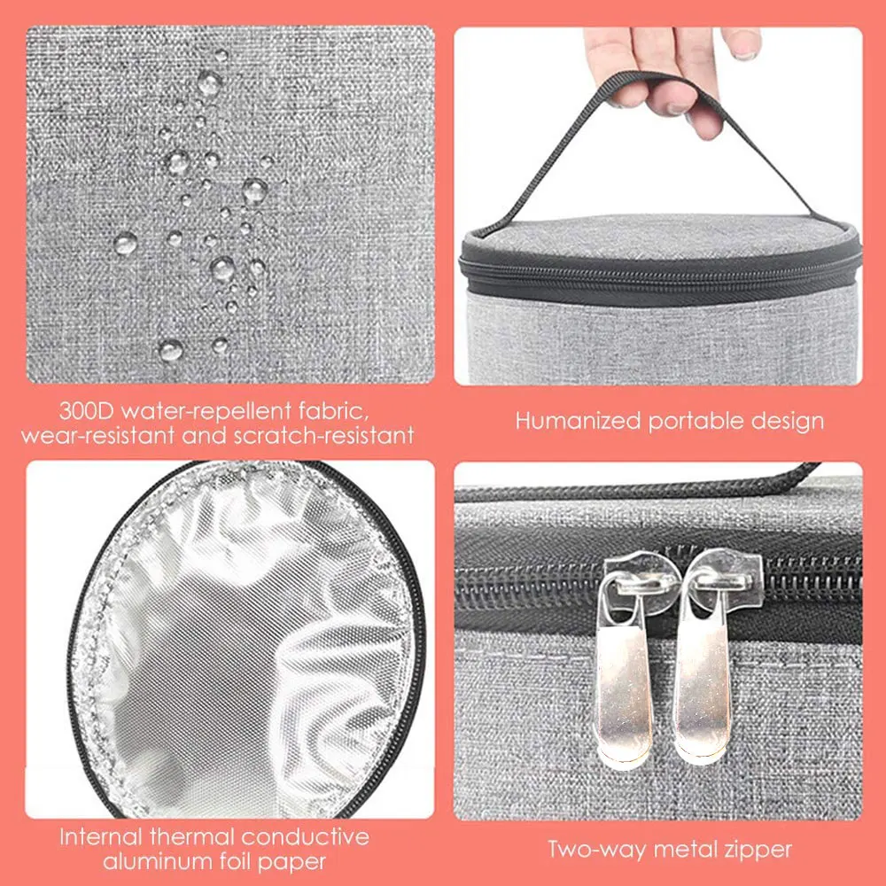 * 【Gran capacidad】El calentador de botellas de viaje puede contener 3 botellas o vasos con pajita.Cuando no sea necesario calentar, puede sostenerlo con las manos o colgarlo en el asa del cochecito.