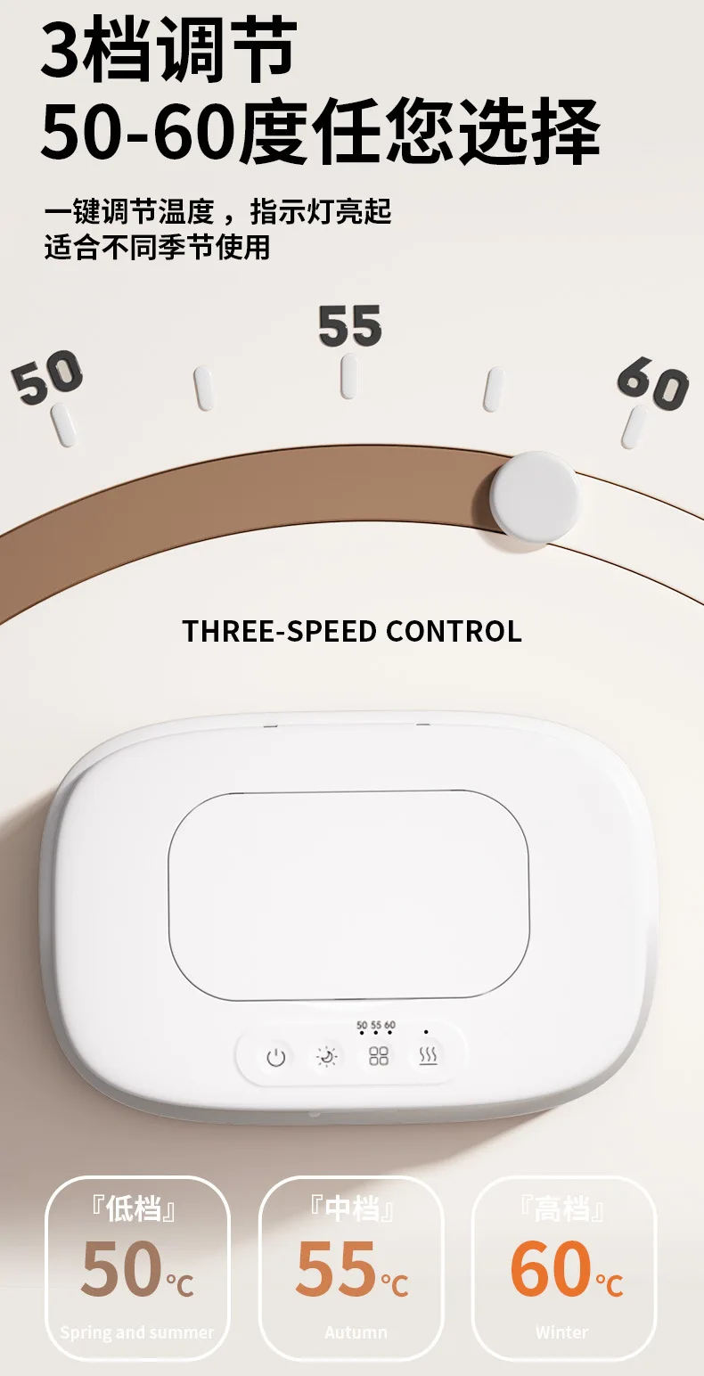 Comprar Calentador de toallitas inteligente para bebé con luz nocturna, temperatura ajustable, calefacción de 3 niveles, parte superior de acero inoxidable, ahorro de energía de baja potencia