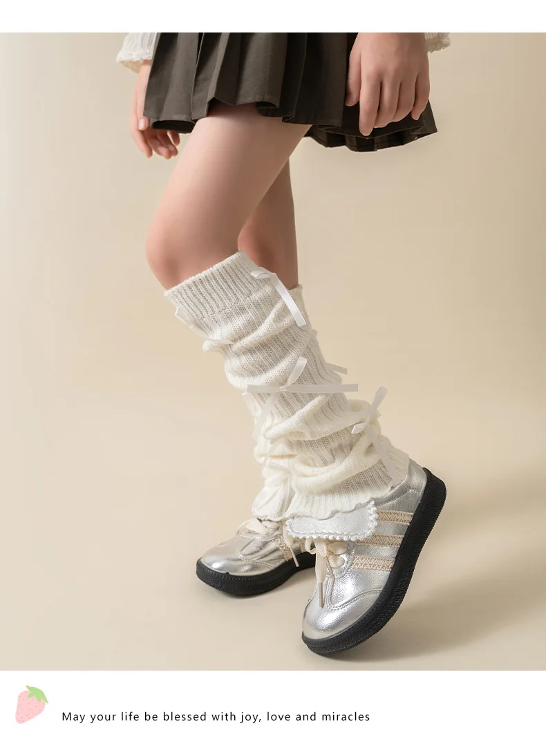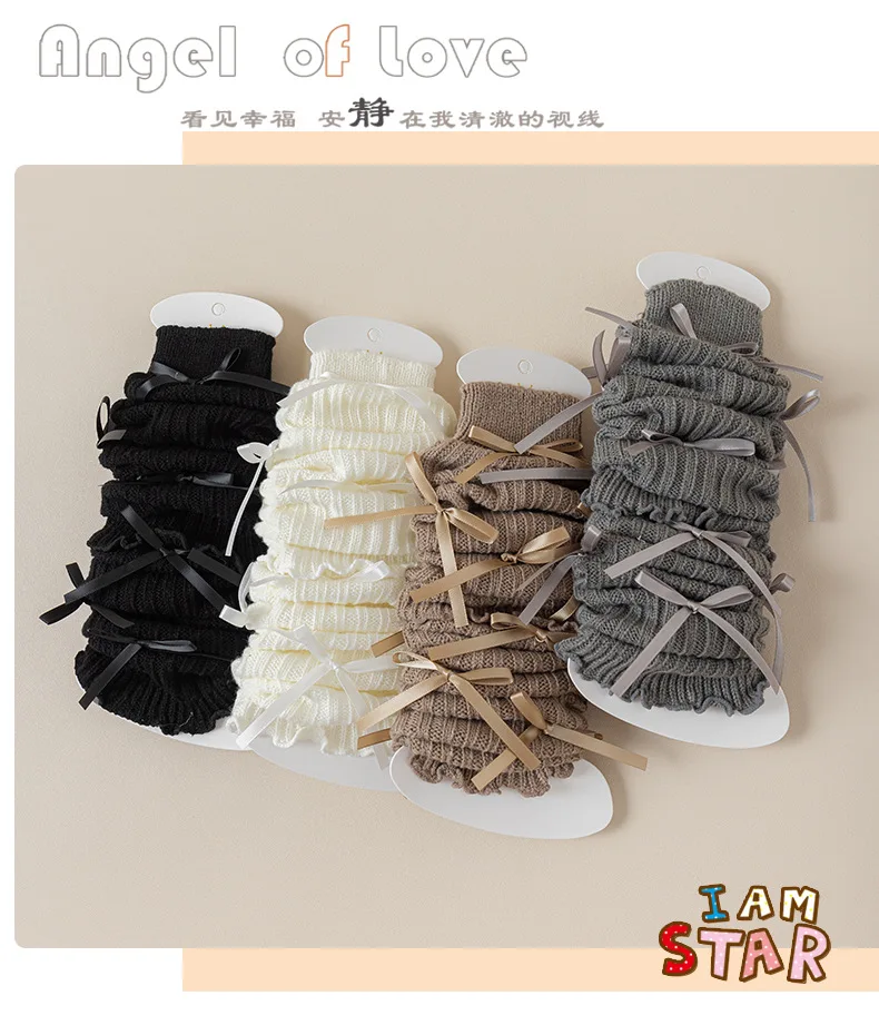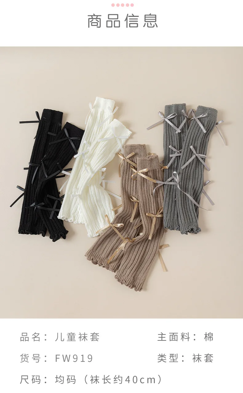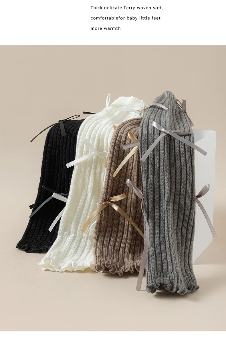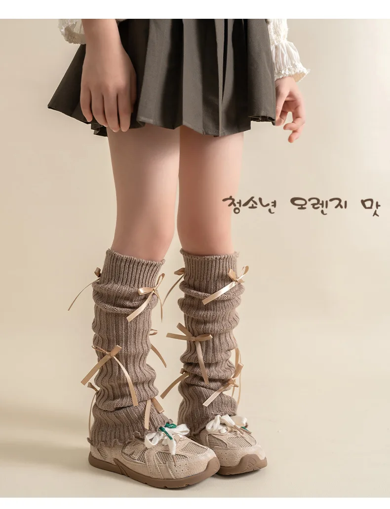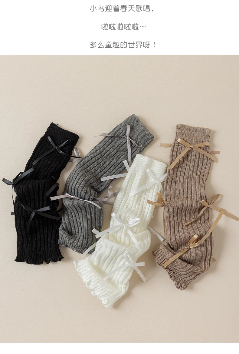 Calentadores de piernas coreanos con lazo de encaje para niños, cubierta de pie tejida, estilo Lolita, calcetines de tubo elásticos sólidos para Otoño e Invierno