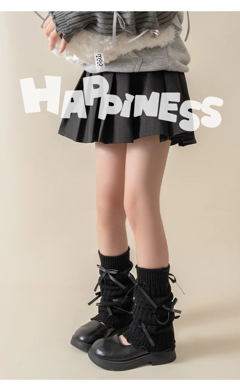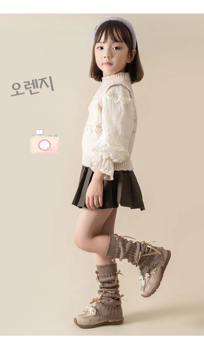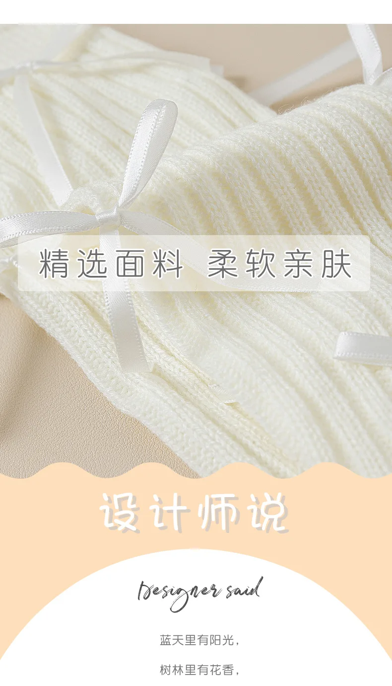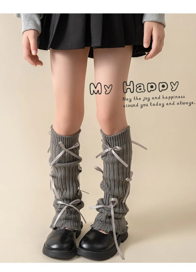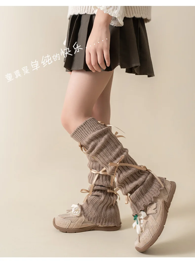 Calentadores de piernas coreanos con lazo de encaje para niños, cubierta de pie tejida, estilo Lolita, calcetines de tubo elásticos sólidos para Otoño e Invierno