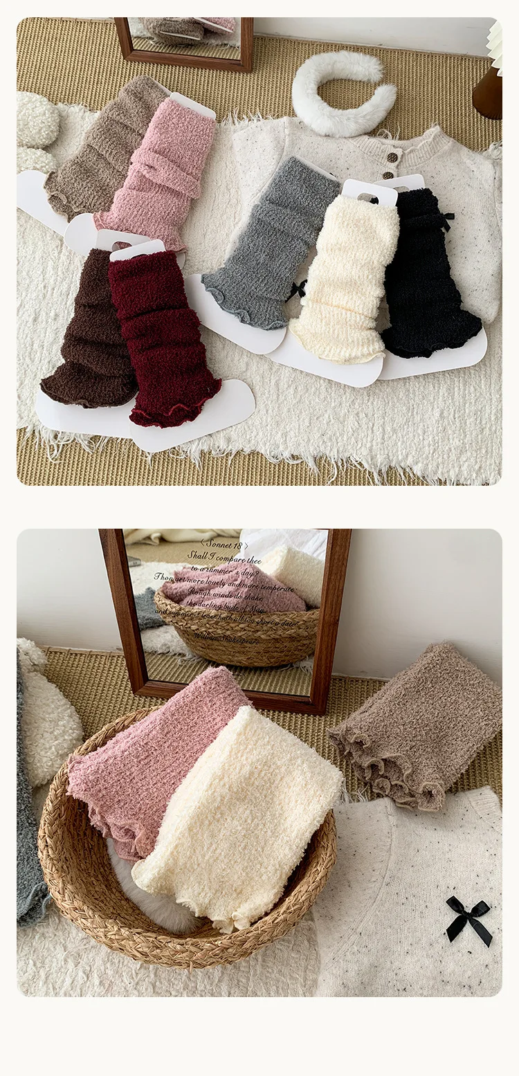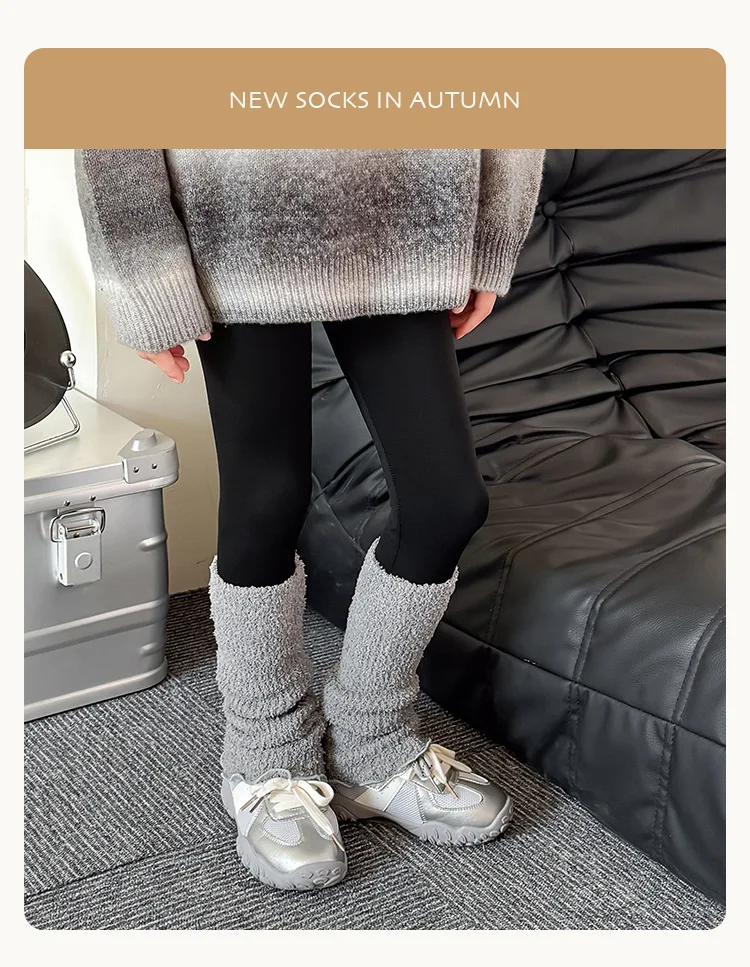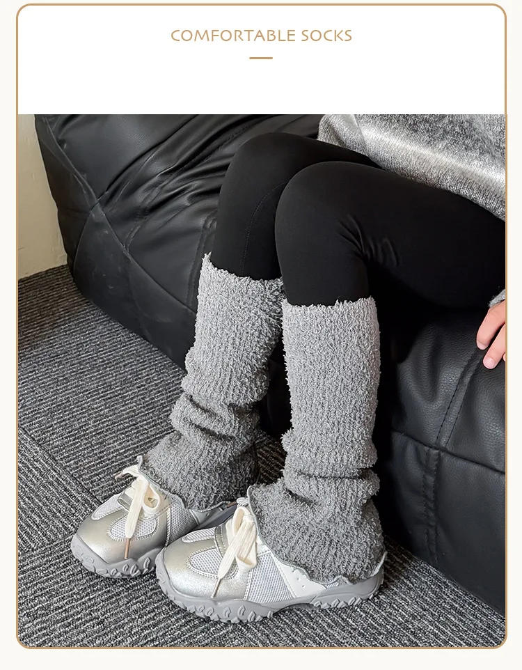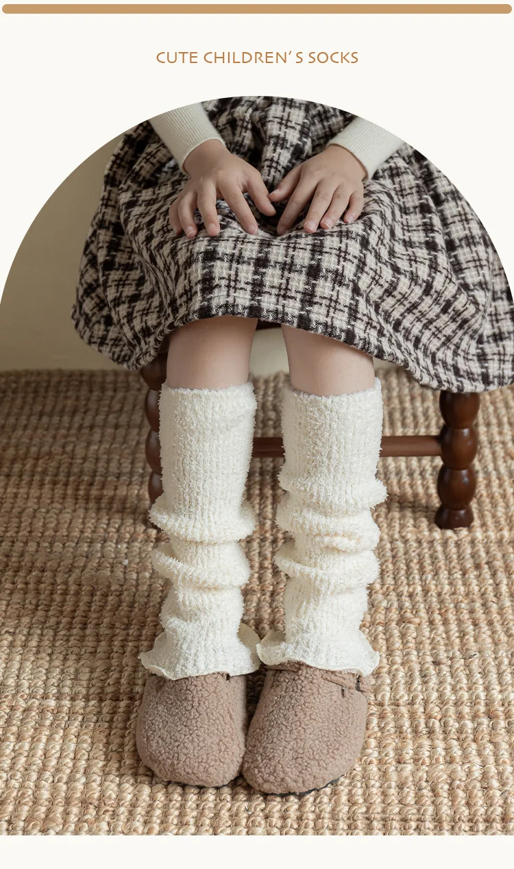 Calentadores de piernas coreanos para niños y niñas, calcetines holgados térmicos gruesos de Color sólido para invierno, calcetines apilables de altura de pantorrilla, calcetines de mezcla de algodón suave