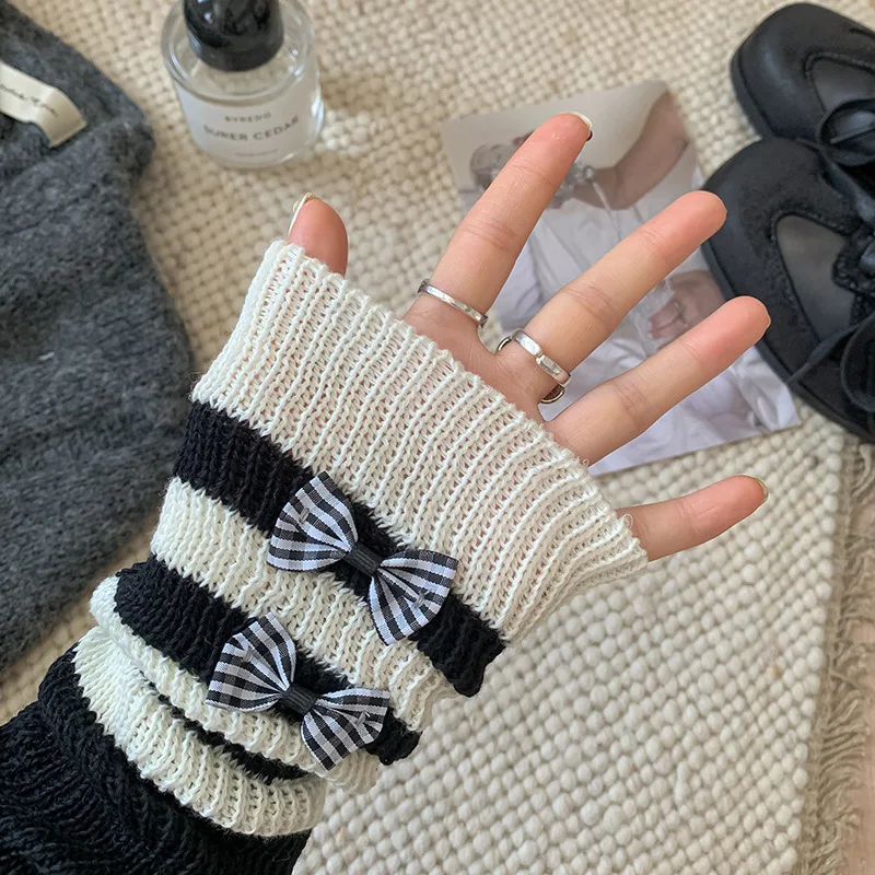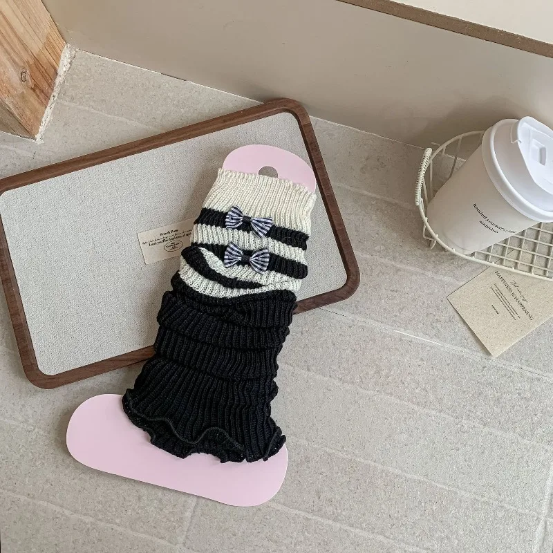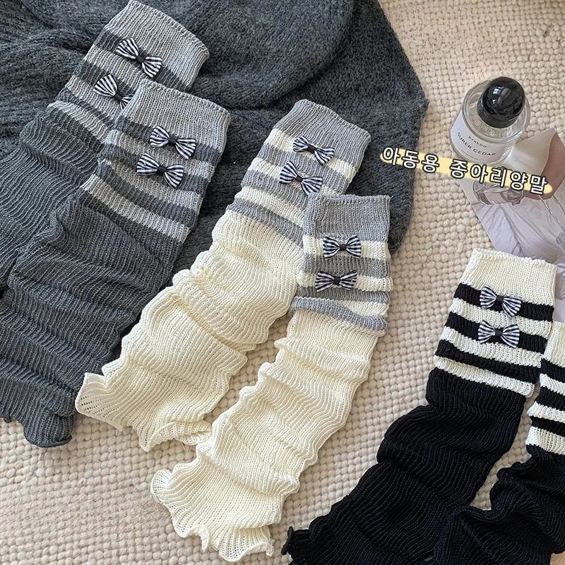 Calentadores de piernas con lazo bonito para niños y niñas, puños de botas de punto Lolita, calcetines apilables a la moda, accesorios de traje hasta la rodilla para niños