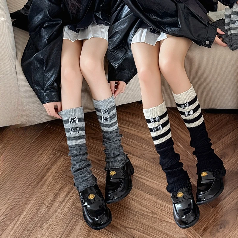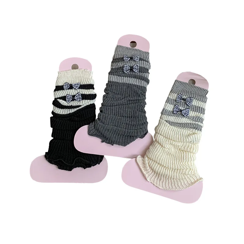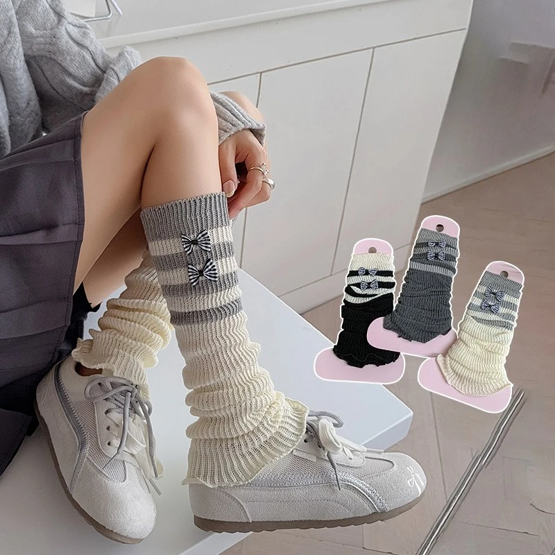 Comprar Calentadores de piernas con lazo bonito para niños y niñas, puños de botas de punto Lolita, calcetines apilables a la moda, accesorios de traje hasta la rodilla para niños