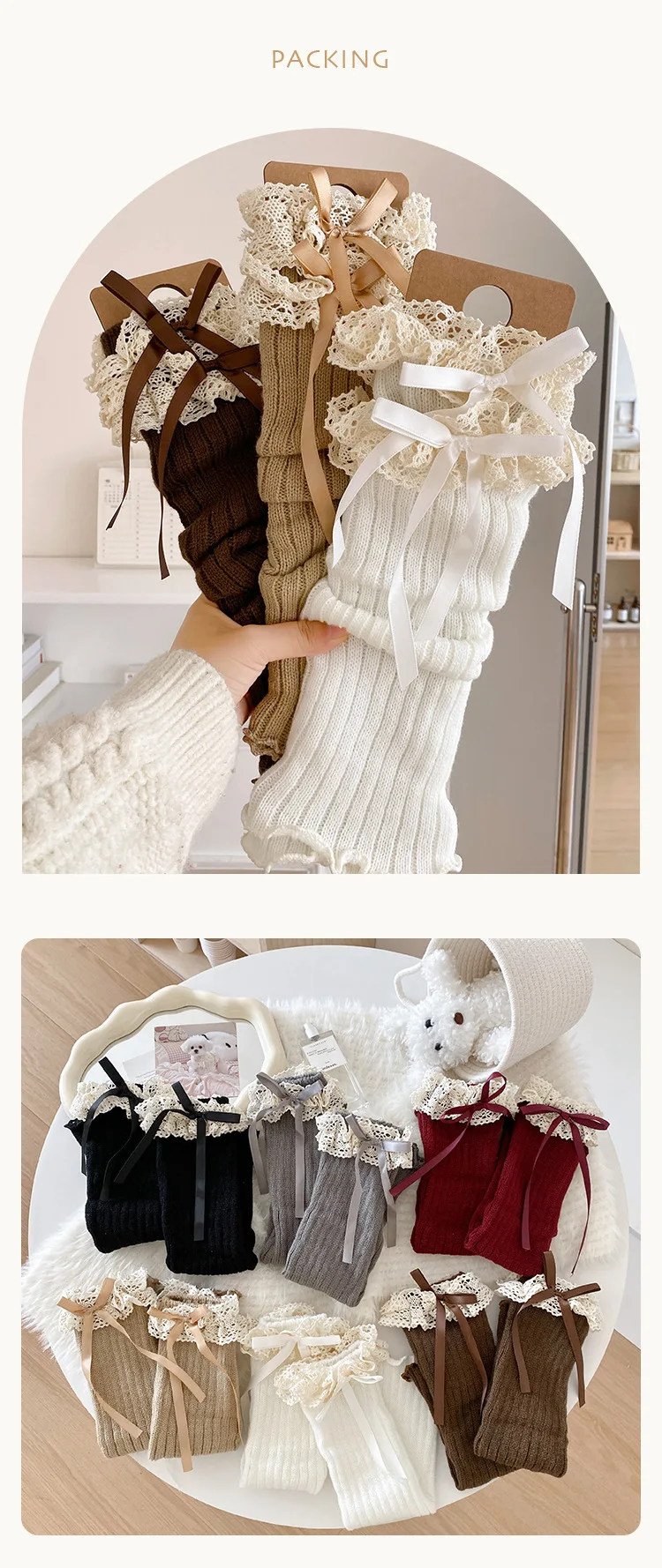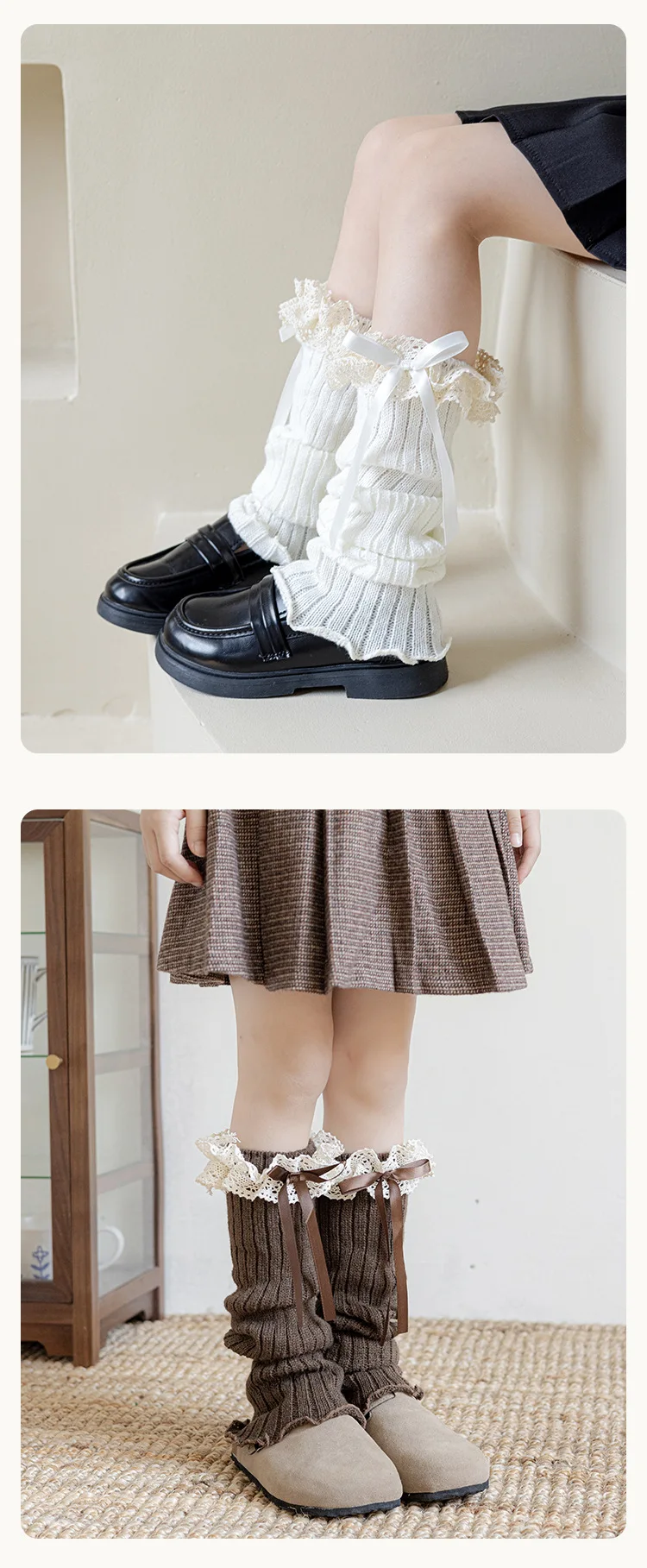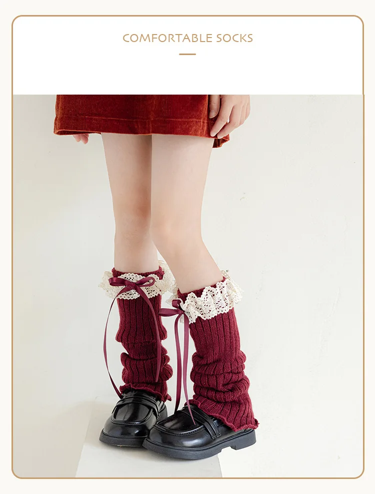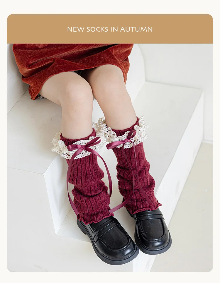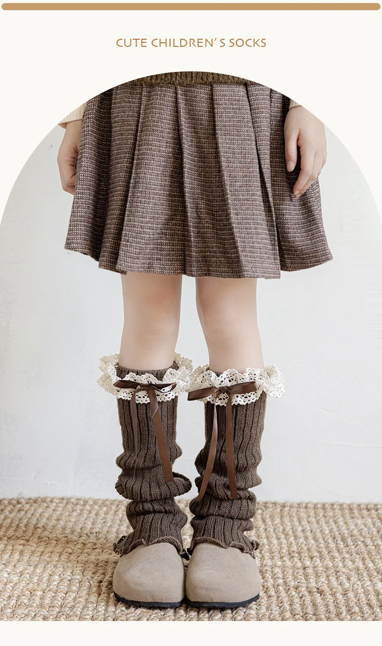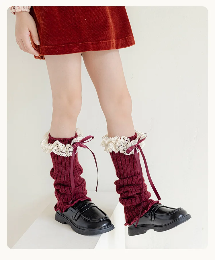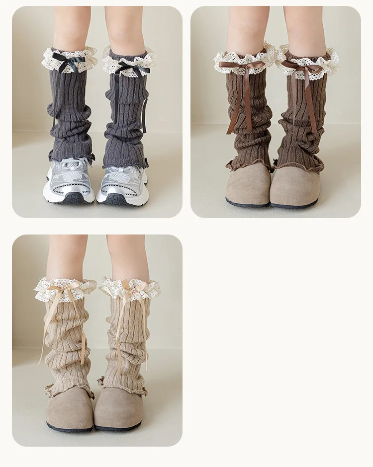 Calentadores de piernas con lazo para niñas JK Lolita, medias largas Harajuku, calcetines de punto dulces, calentador de pies Kawaii de Color sólido para niños y niñas