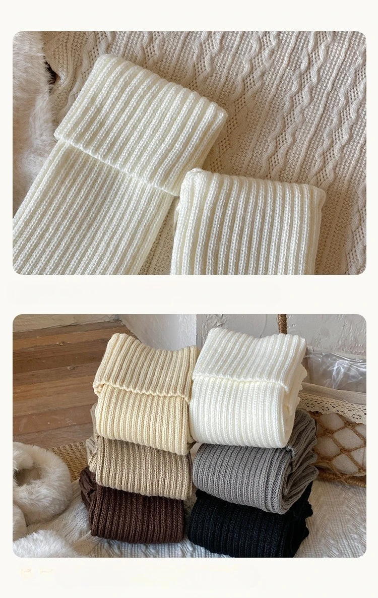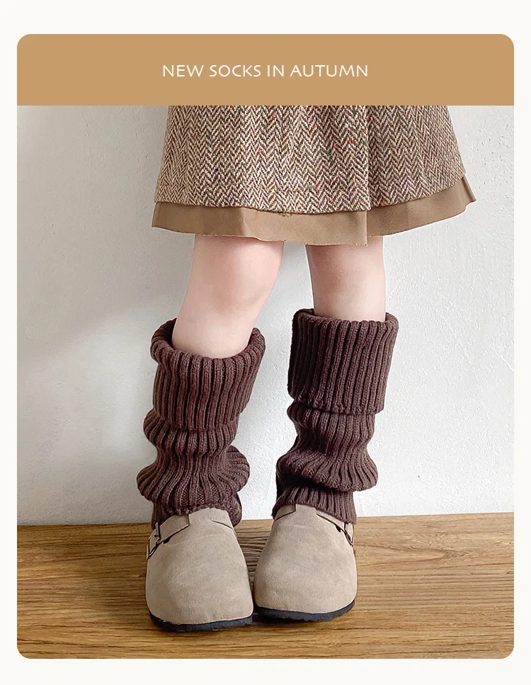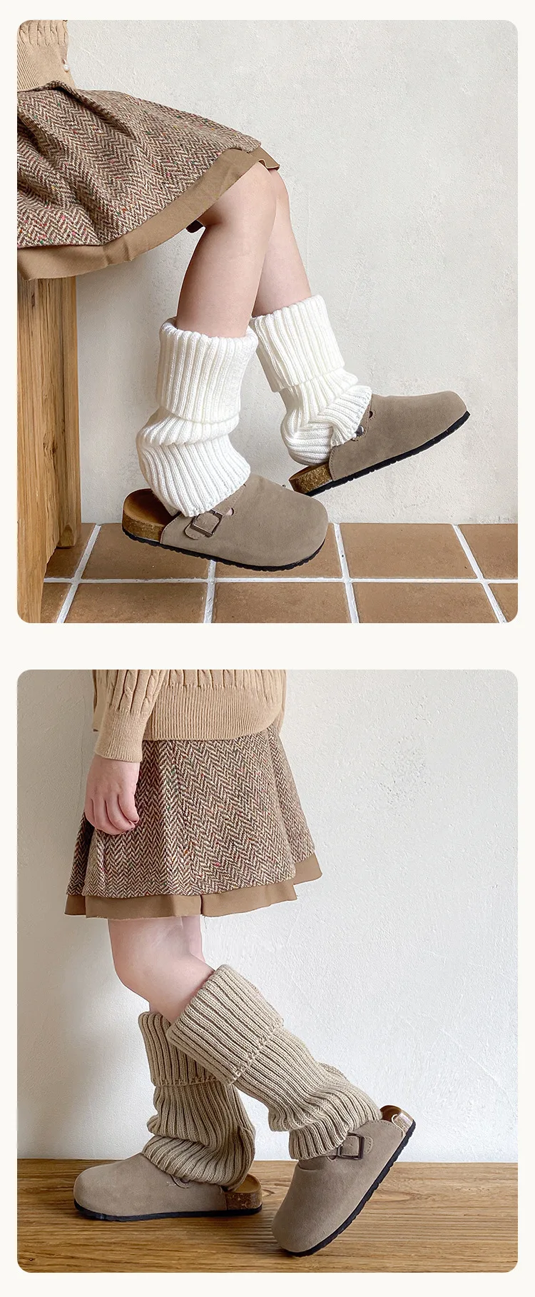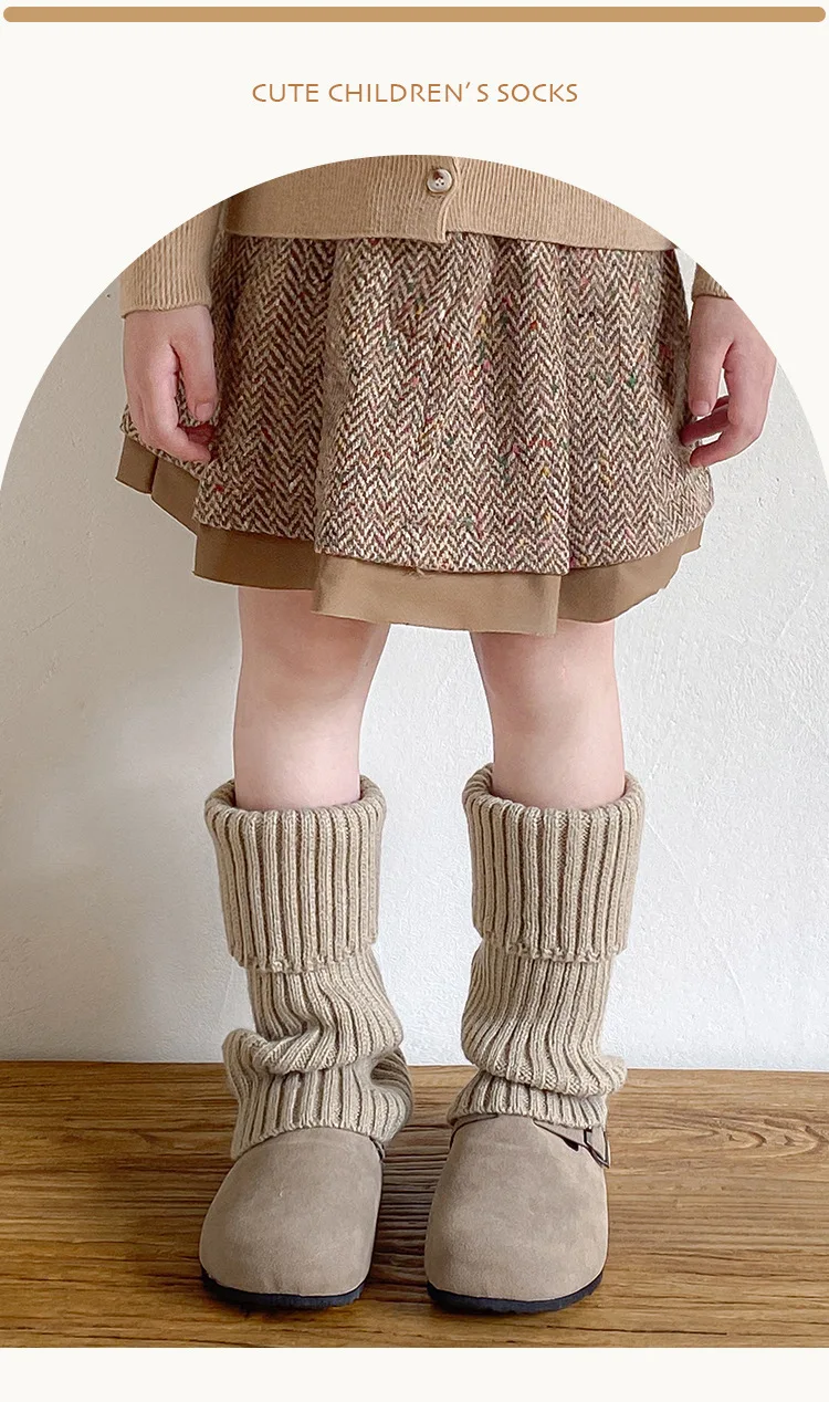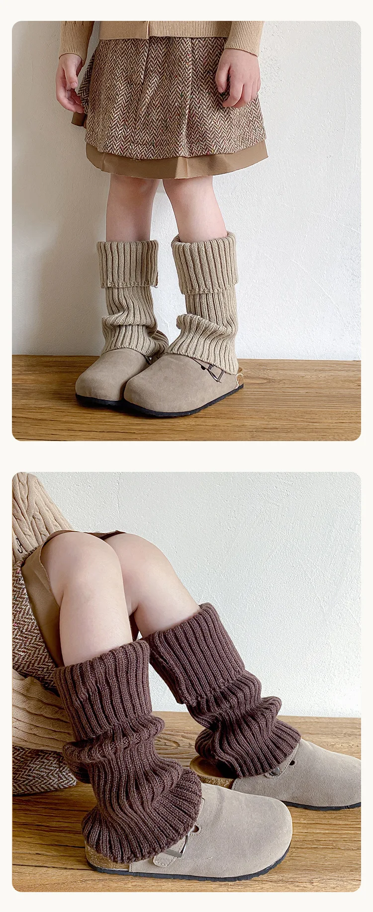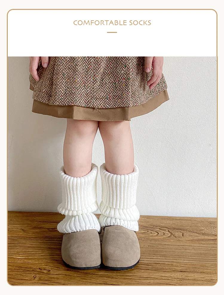 Calentadores de piernas para niños de invierno y otoño, calcetines largos tejidos de Color sólido con cubierta suave para pies, calcetines cálidos hasta la pantorrilla para niñas, accesorios de 3 a 12 años