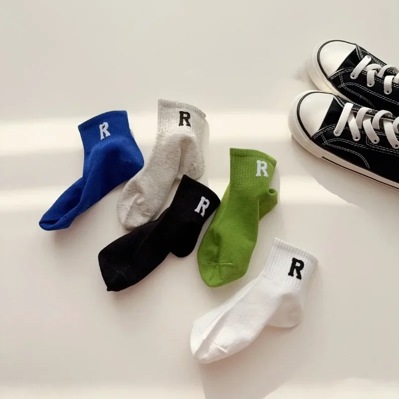 Caliente 5 par/set deporte moda pantorrilla calcetín para niños niño simplicidad letra R rayas calcetín escolar para niños primavera otoño 4-15 años así