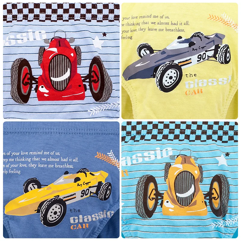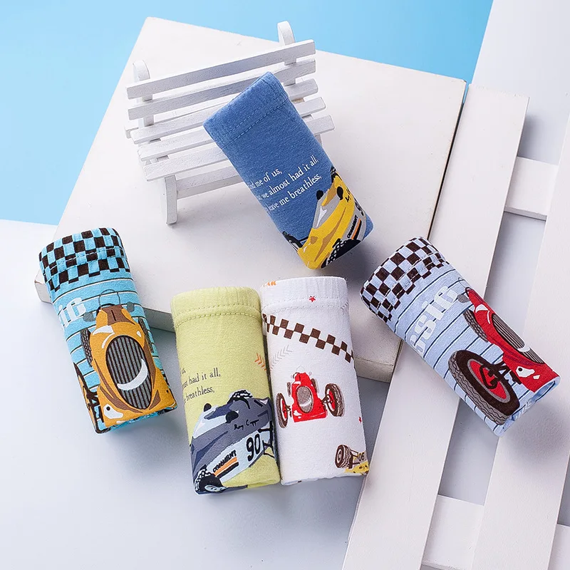 Comprar Calzoncillos triangulares de algodón para niños, ropa interior transpirable con patrón de coche de carreras, no fluorescente, 5 unidades por lote