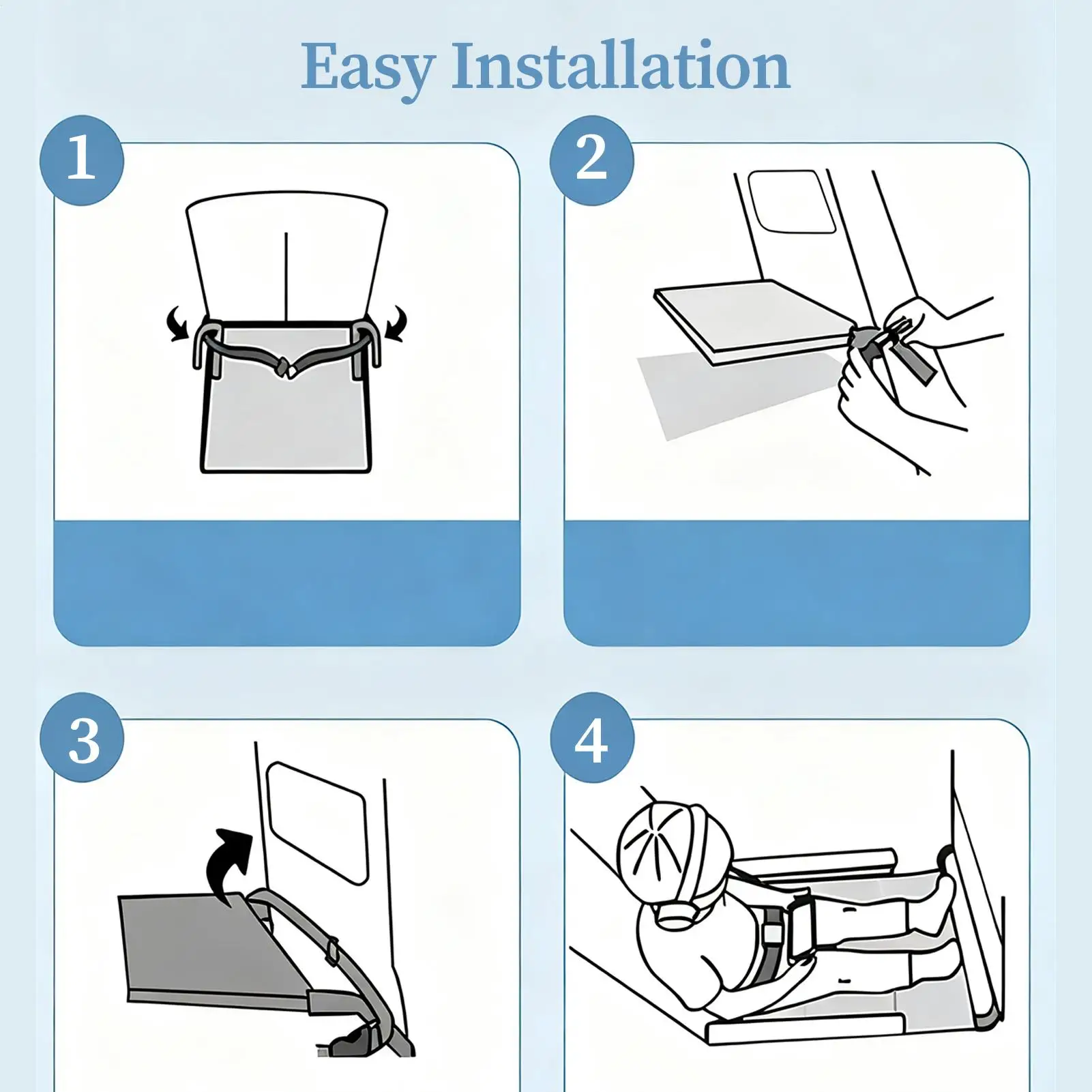 4.Comodidad de viaje mejorada: Diseñado como un producto de viaje imprescindible, el extensor de asiento de avión para niños proporciona una estructura liviana y plegable, brindando a las familias mayor comodidad y facilidad de uso, ya sea que viaje a nivel nacional o internacional, creando un viaje perfecto para ambos niños. y adultos por igual