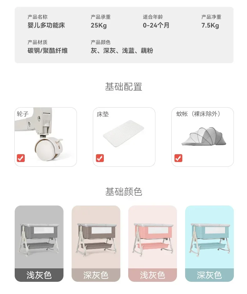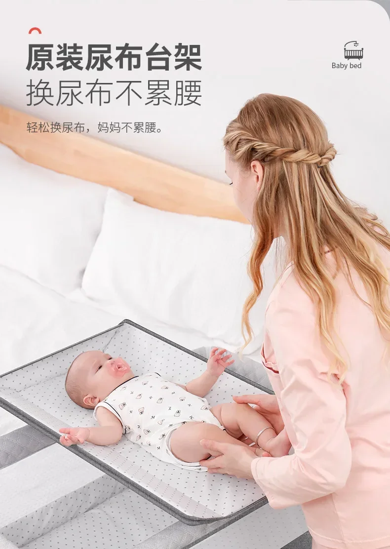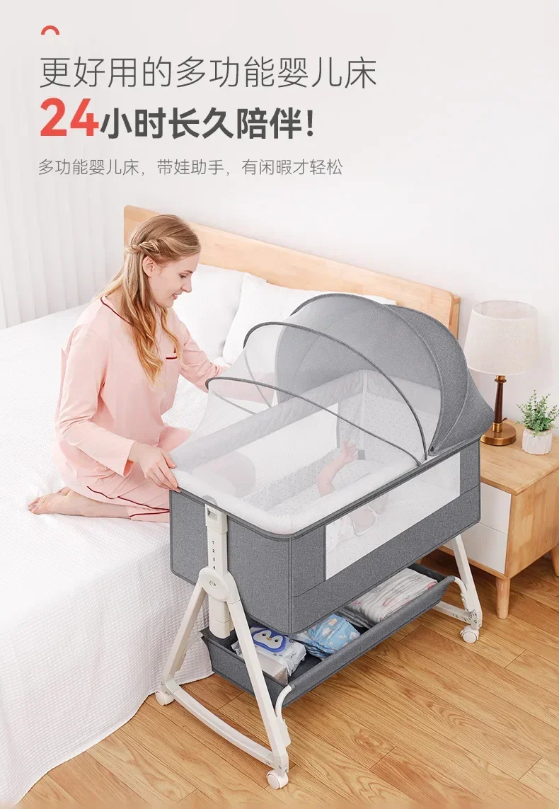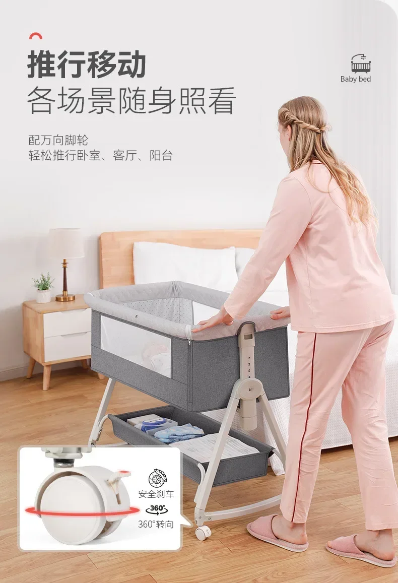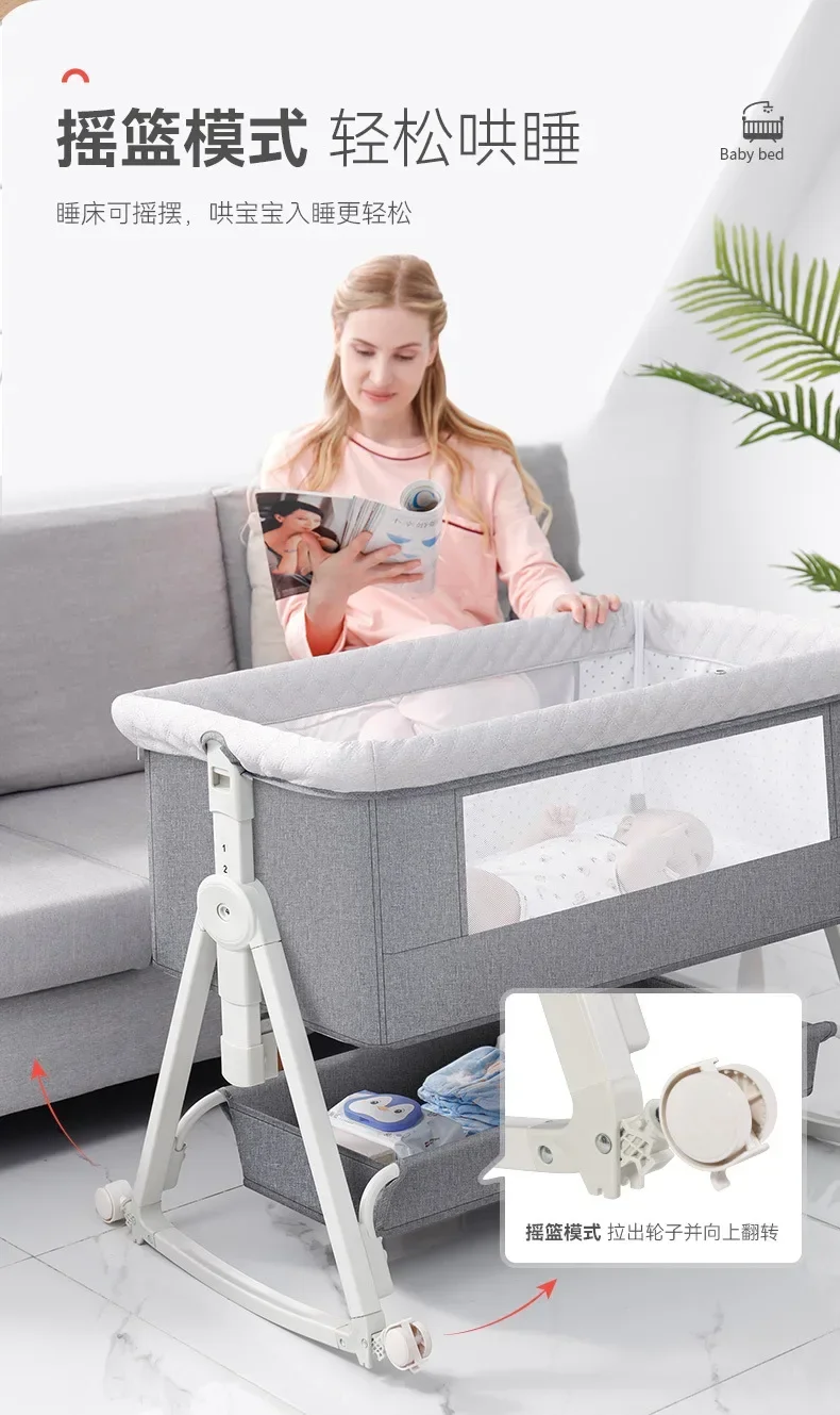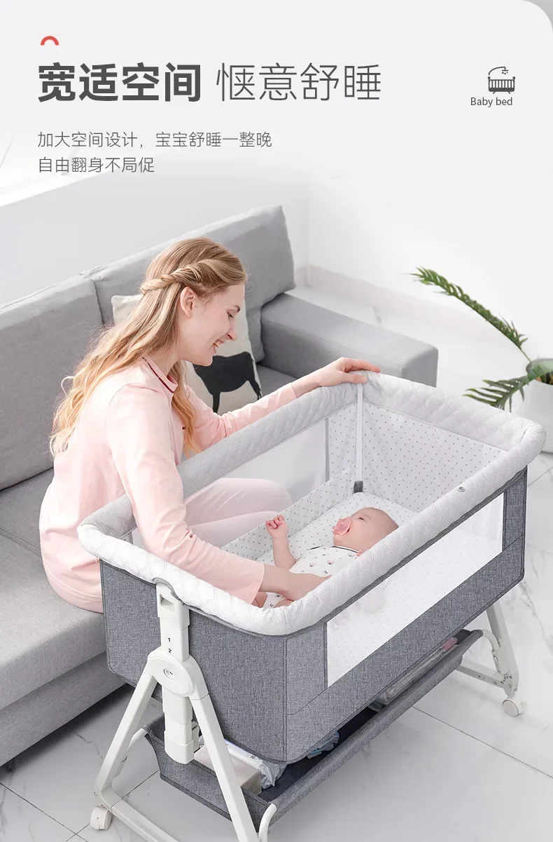 La cama para bebé recién nacido se puede empalmar en una grande cama plegable portátil para bebé, cuna extraíble multifuncional Bb