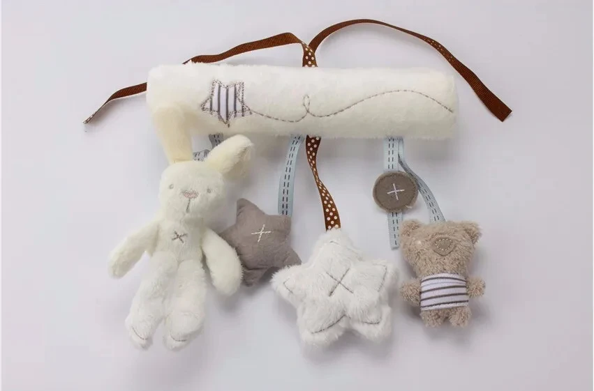 Cama colgante de conejo para bebé, campana de mano, asiento de seguridad, juguete de felpa multifuncional, cochecito de juguete, regalos móviles, nuevo, 2024